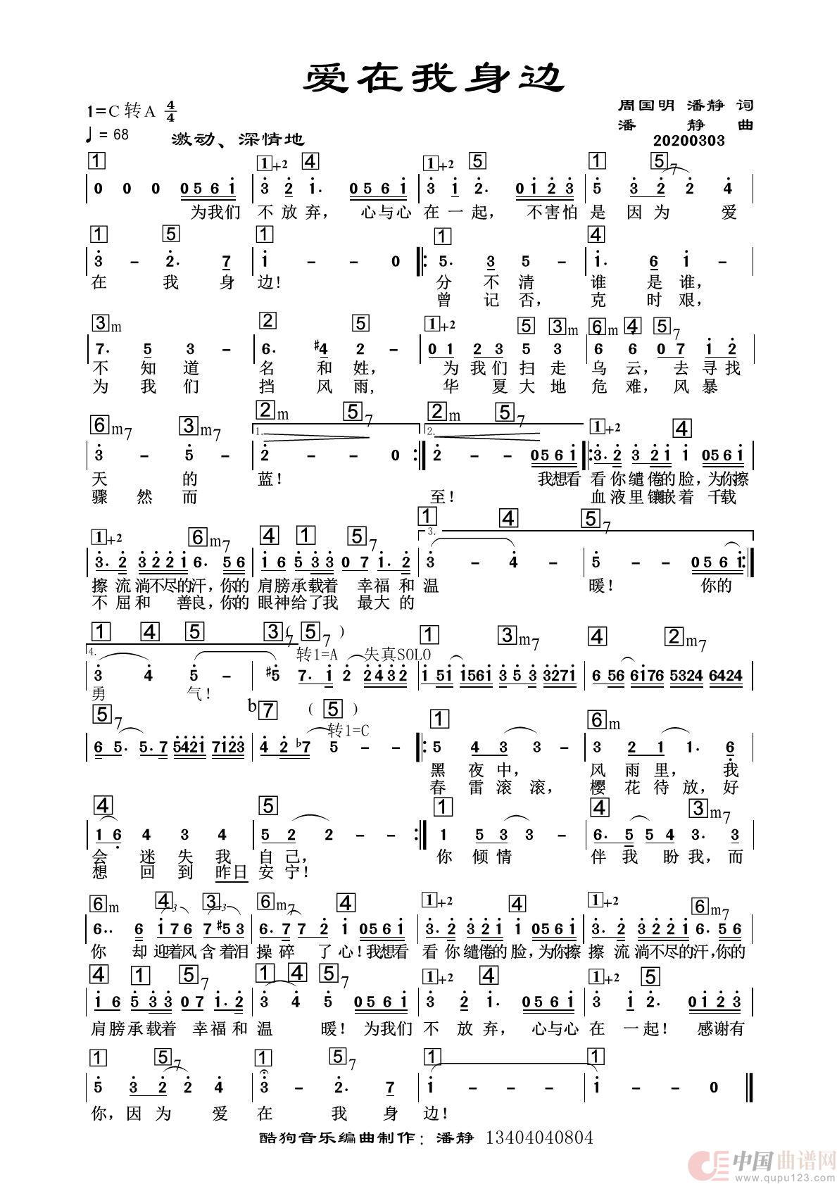 曲谱:《爱在我身边》