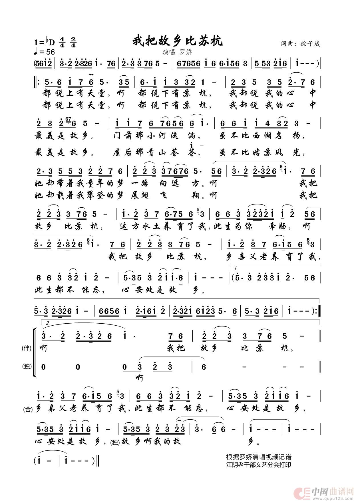 曲谱:我把故乡比苏杭(罗娇演唱)