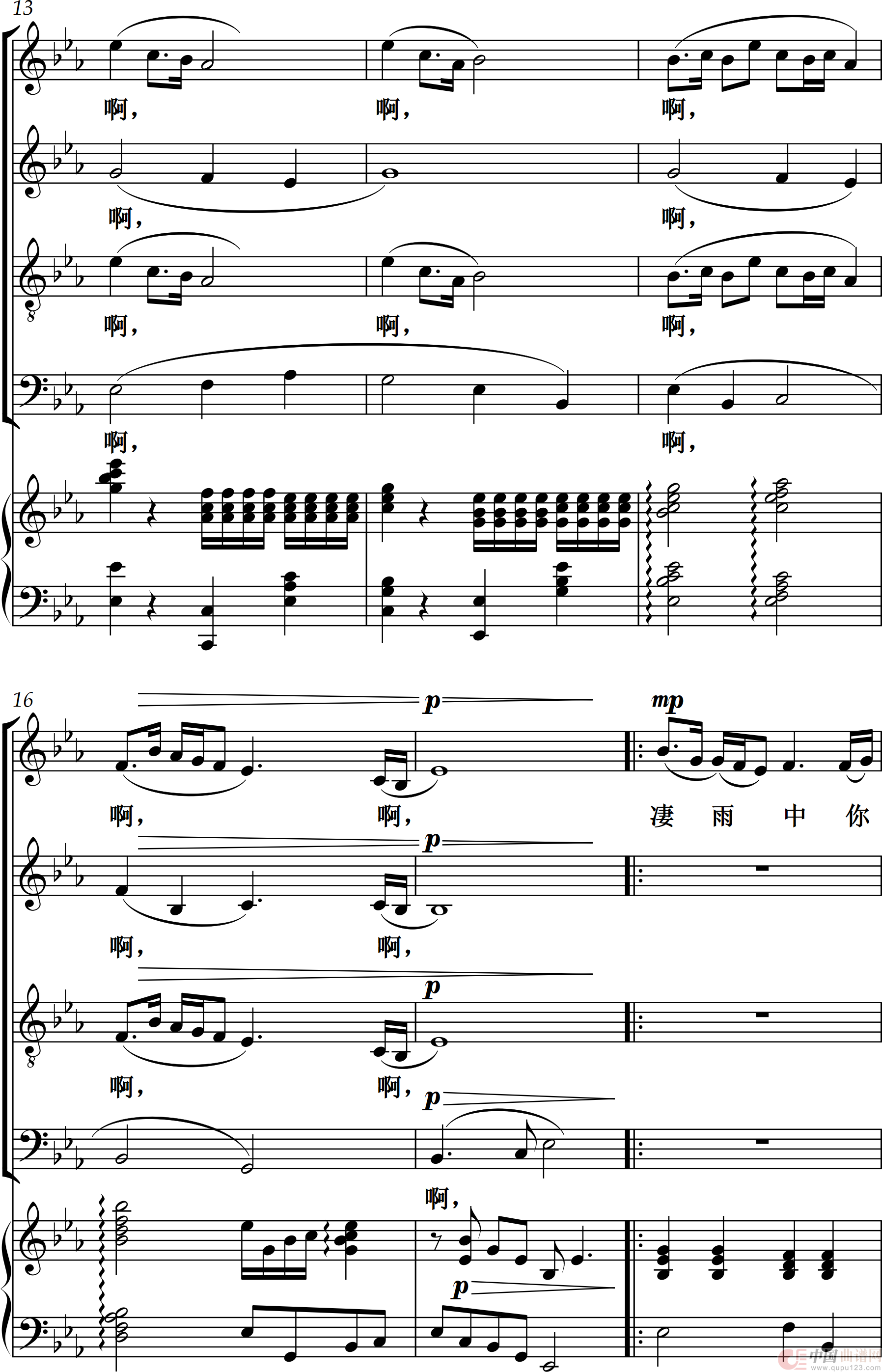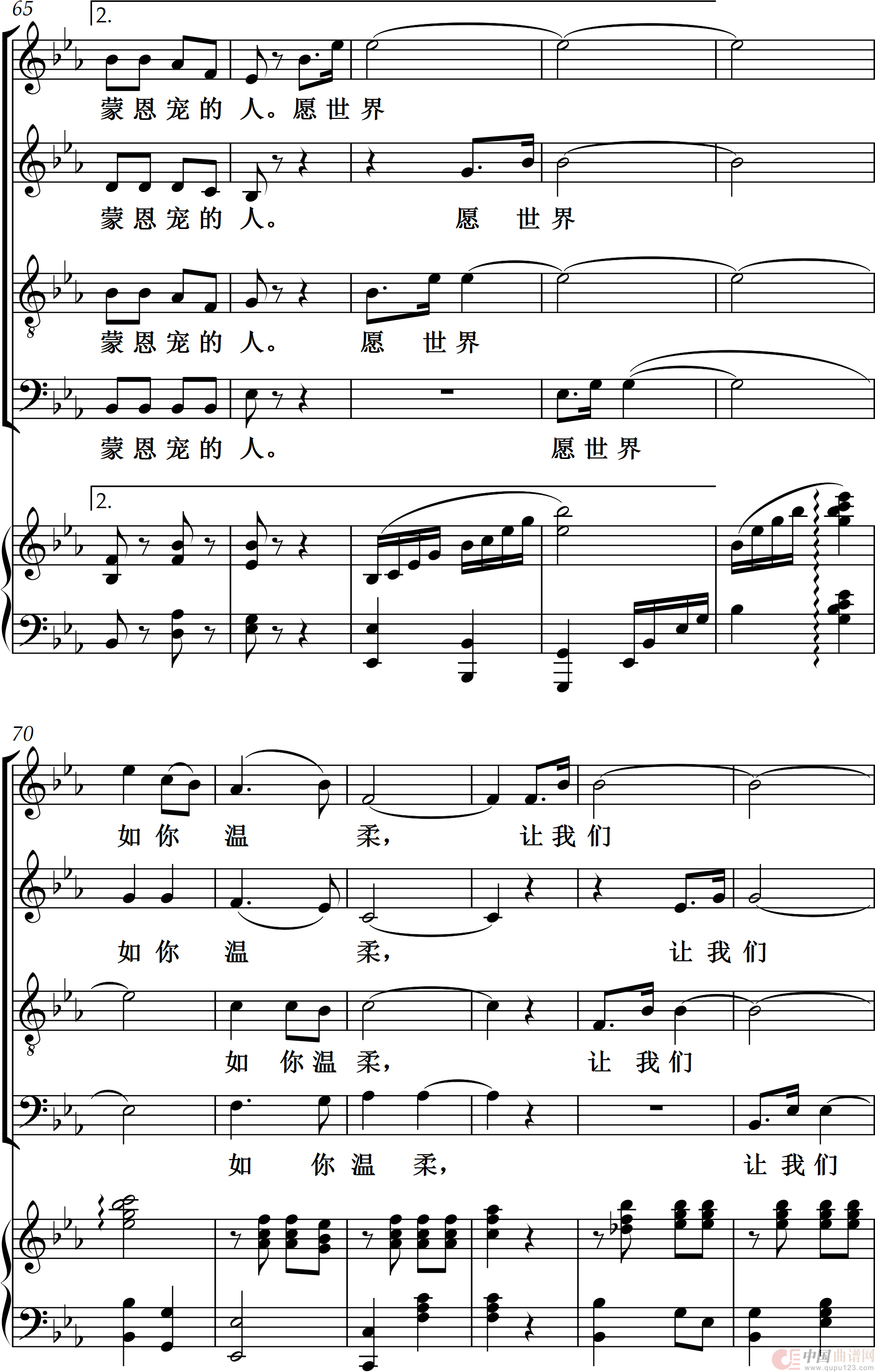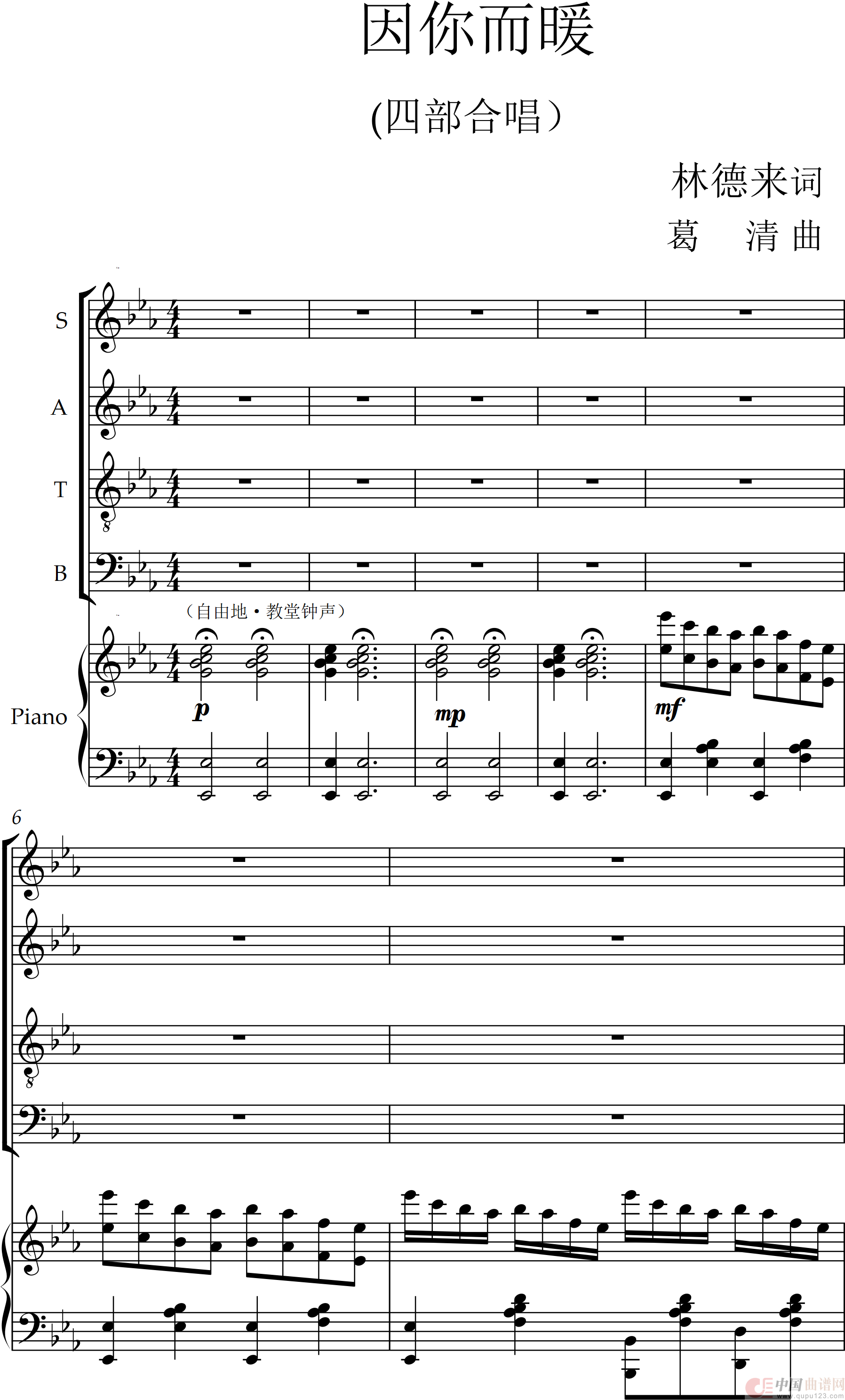曲谱:因你而暖(四部混声合唱)