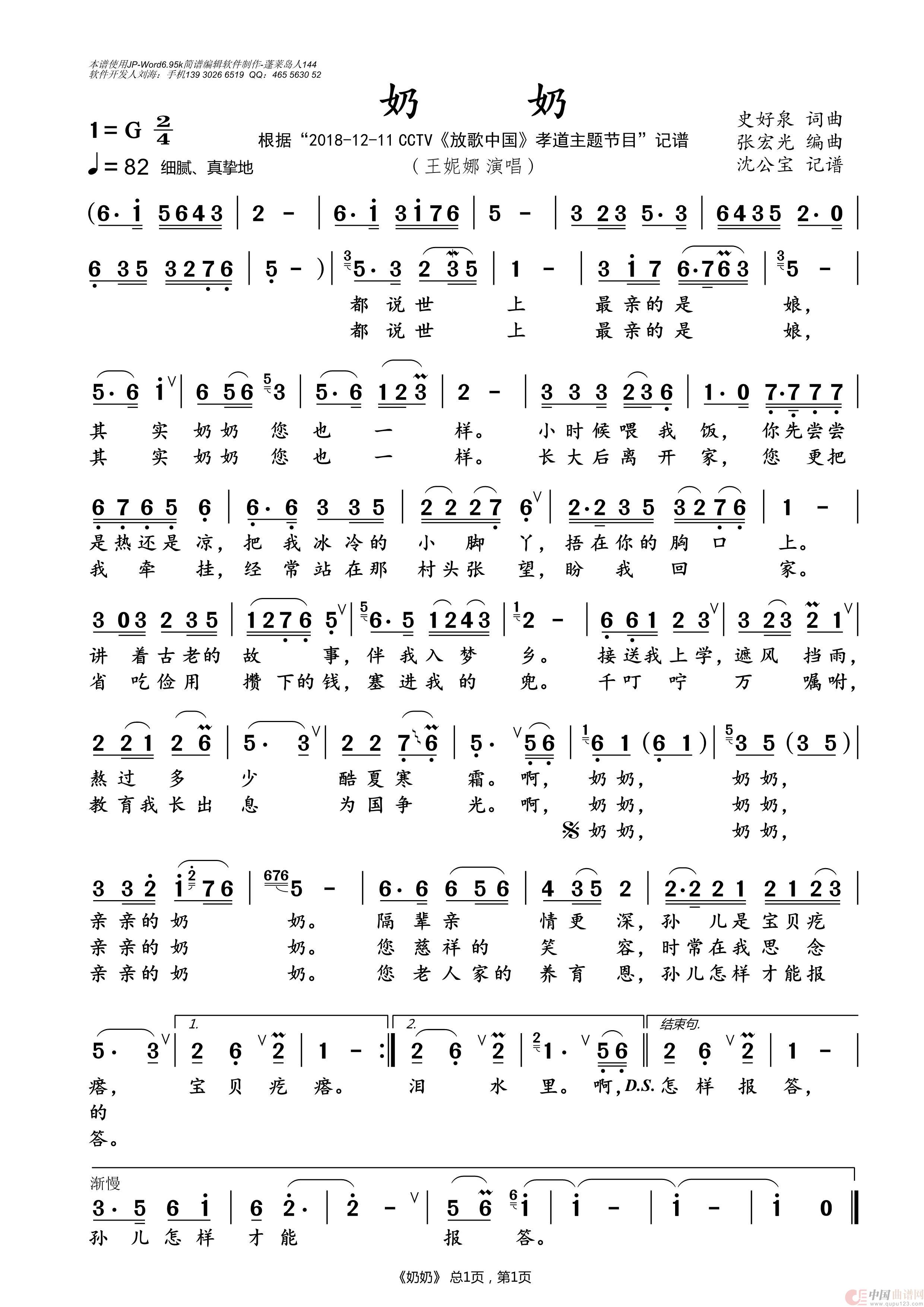 曲谱:奶奶