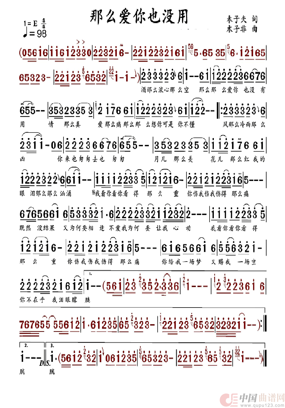 曲谱:那么爱你也没有用