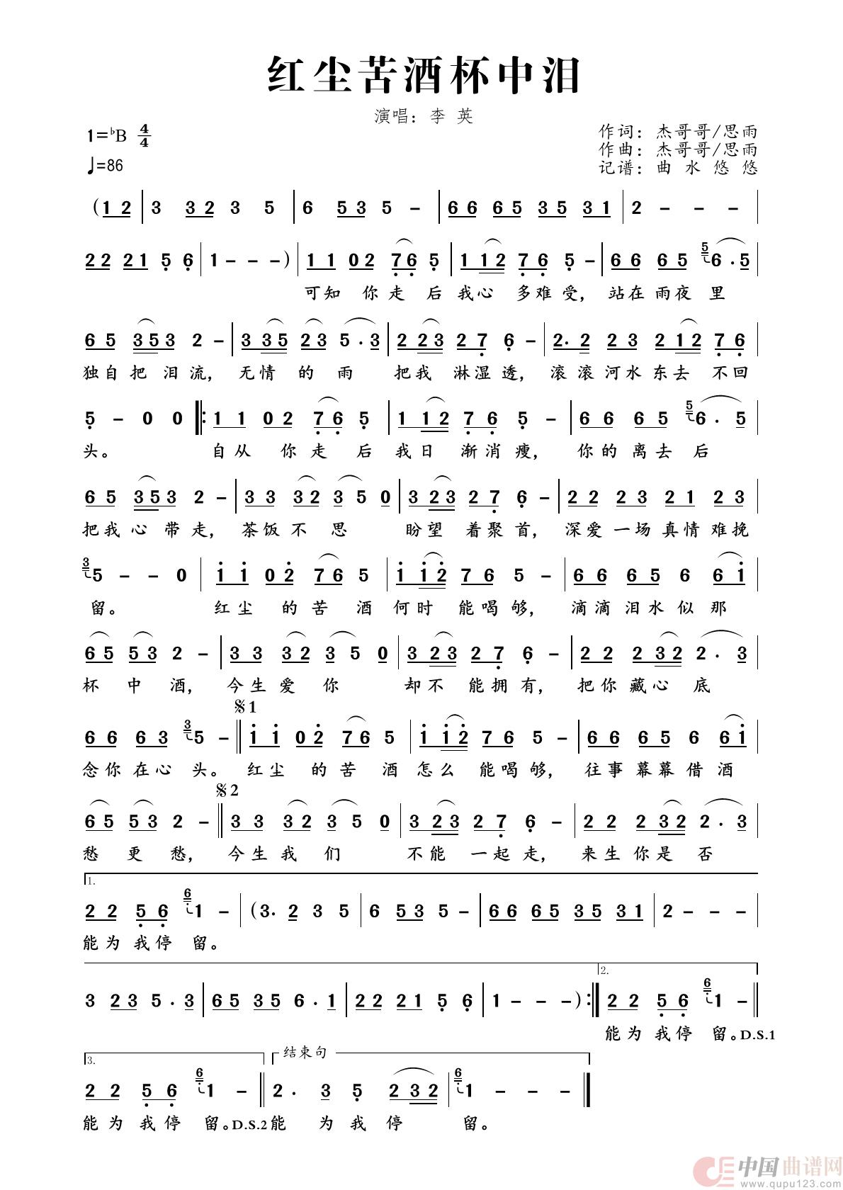 中国曲谱网所有曲谱及资料均为作者提供或网友推荐收集整理而来,仅供爱好者学习和研究使用,版权归原作者所有。如本站内容有侵犯您的合法权益,请和我们取得联系,我们将立即改正或删除。