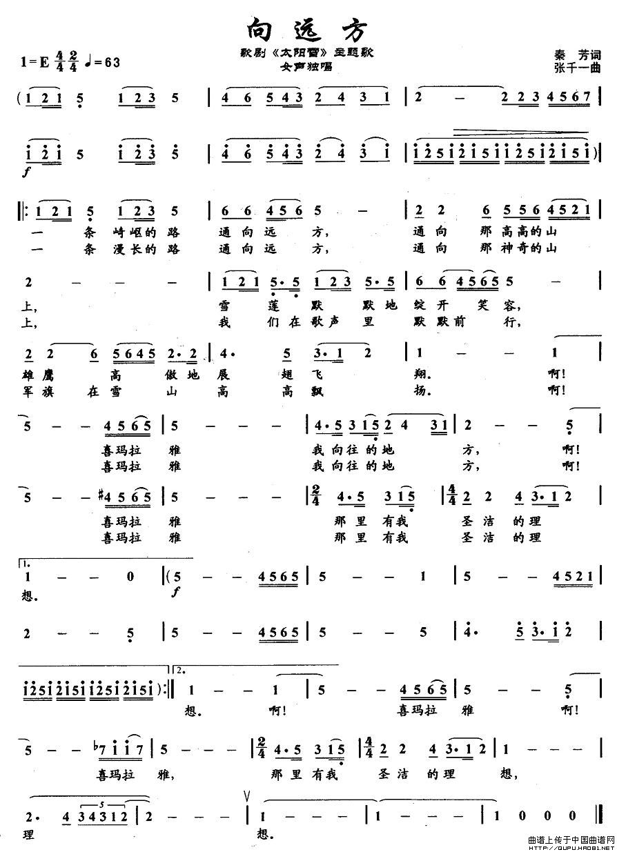 曲谱:向远方(歌剧《太阳雪》主题歌)