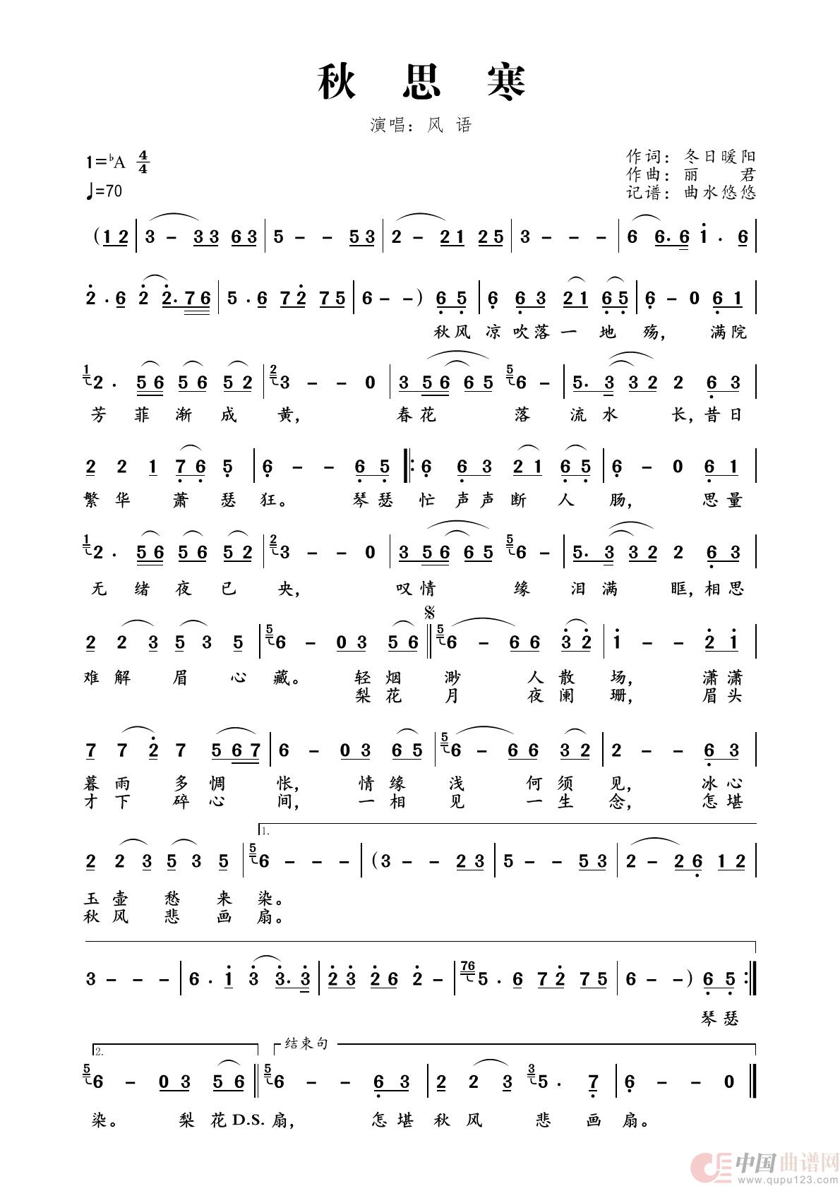 中国曲谱网所有曲谱及资料均为作者提供或网友推荐收集整理而来,仅供爱好者学习和研究使用,版权归原作者所有。如本站内容有侵犯您的合法权益,请和我们取得联系,我们将立即改正或删除。