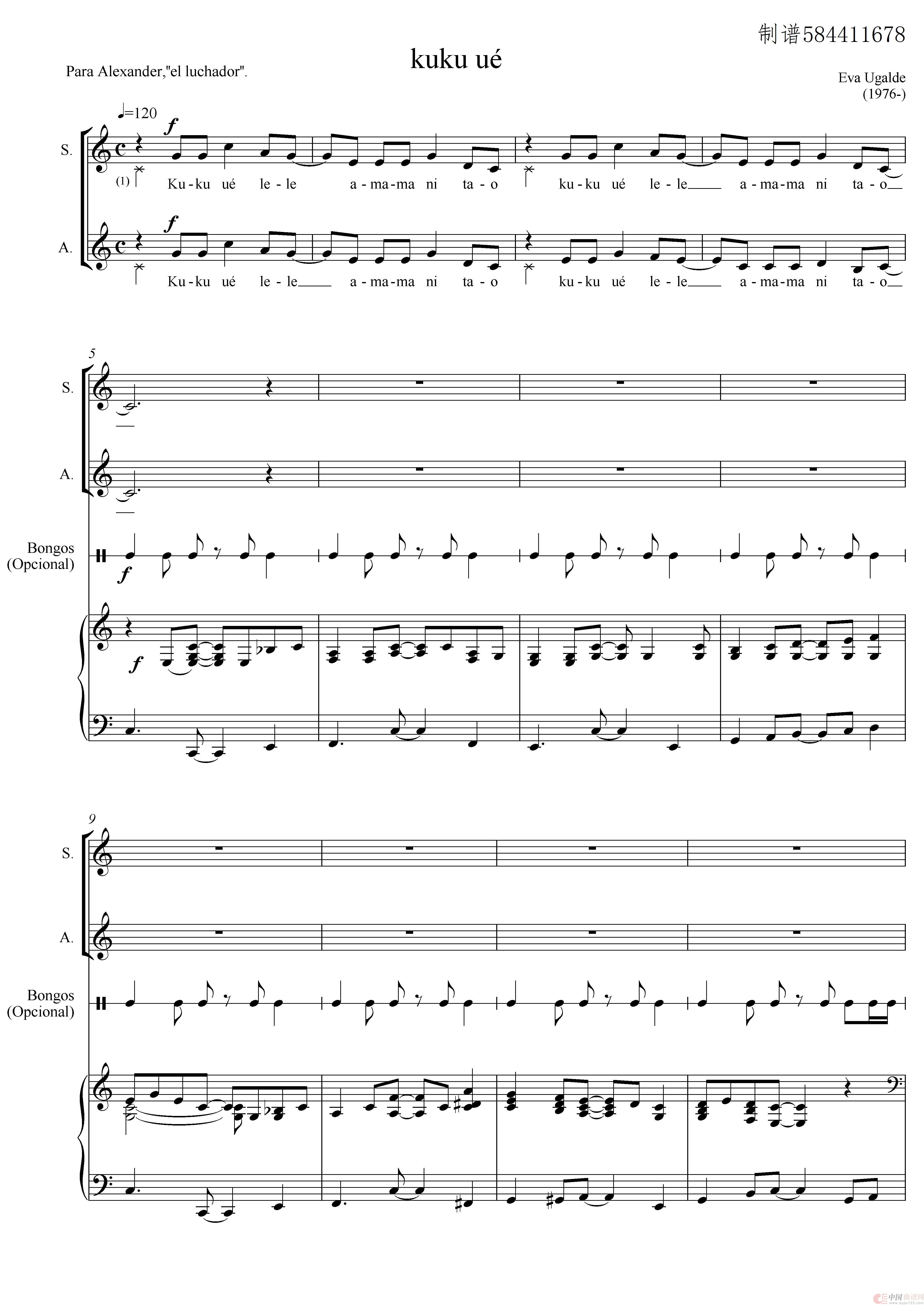 曲谱:kuku ué 二声部合唱谱