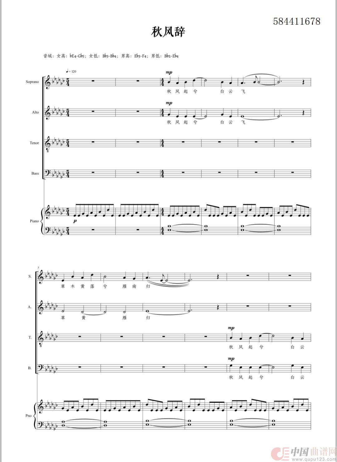 中国曲谱网所有曲谱及资料均为作者提供或网友推荐收集整理而来,仅供爱好者学习和研究使用,版权归原作者所有。如本站内容有侵犯您的合法权益,请和我们取得联系,我们将立即改正或删除。