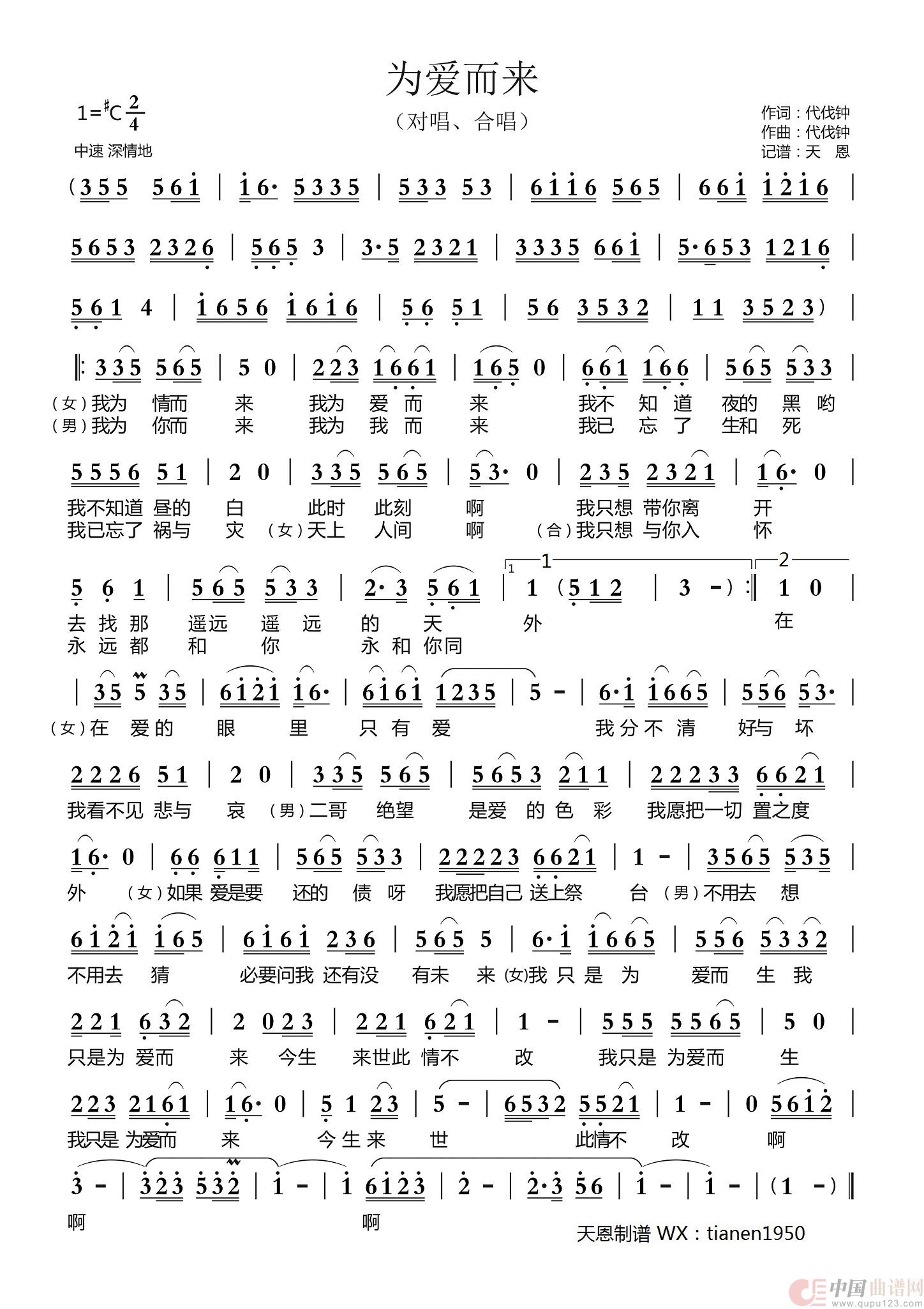 曲谱:为爱而来