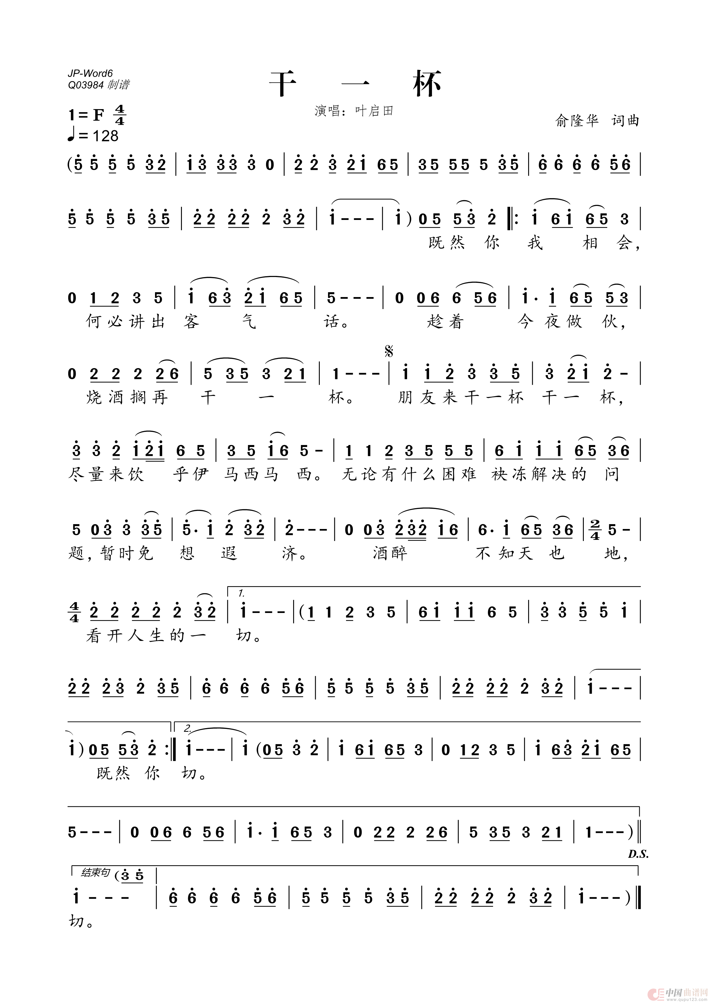 中国曲谱网所有曲谱及资料均为作者提供或网友推荐收集整理而来,仅供爱好者学习和研究使用,版权归原作者所有。如本站内容有侵犯您的合法权益,请和我们取得联系,我们将立即改正或删除。