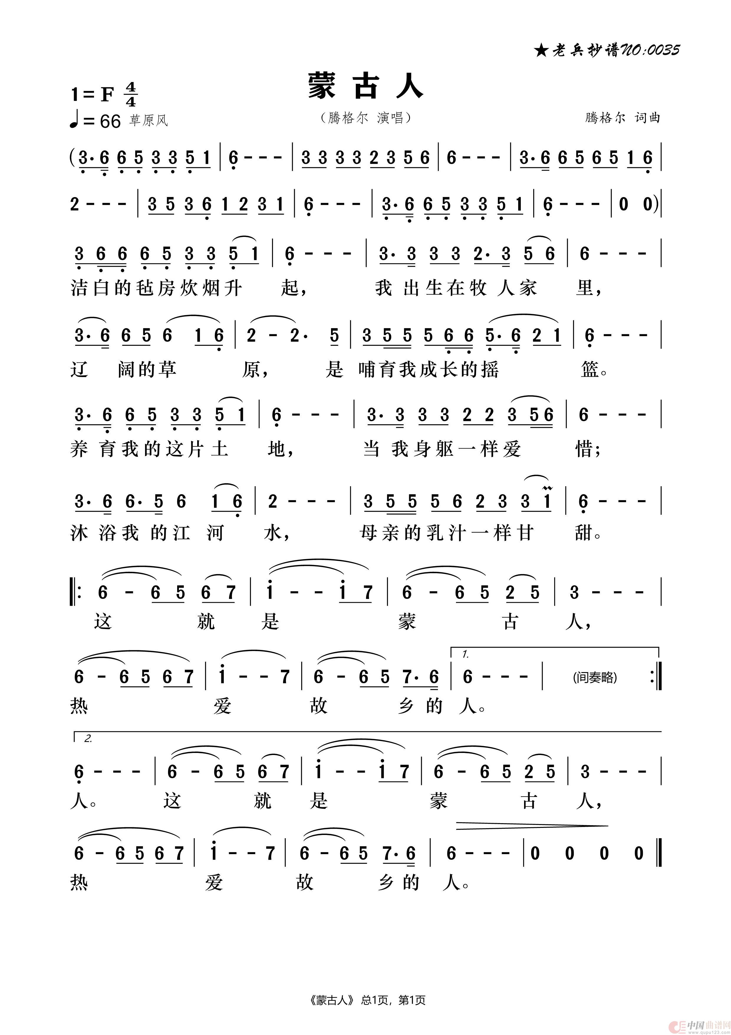 曲谱:蒙古人