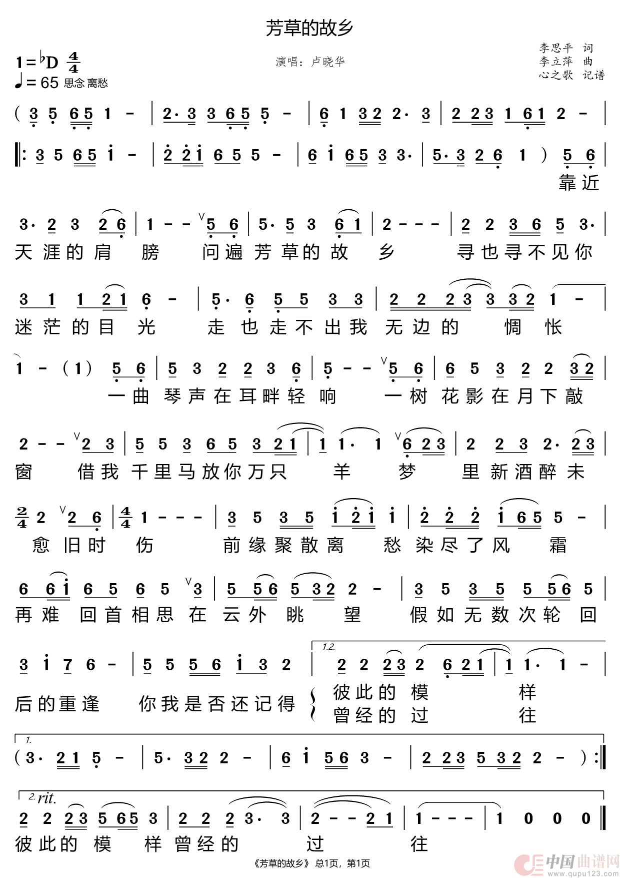 中国曲谱网所有曲谱及资料均为作者提供或网友推荐收集整理而来,仅供爱好者学习和研究使用,版权归原作者所有。如本站内容有侵犯您的合法权益,请和我们取得联系,我们将立即改正或删除。
