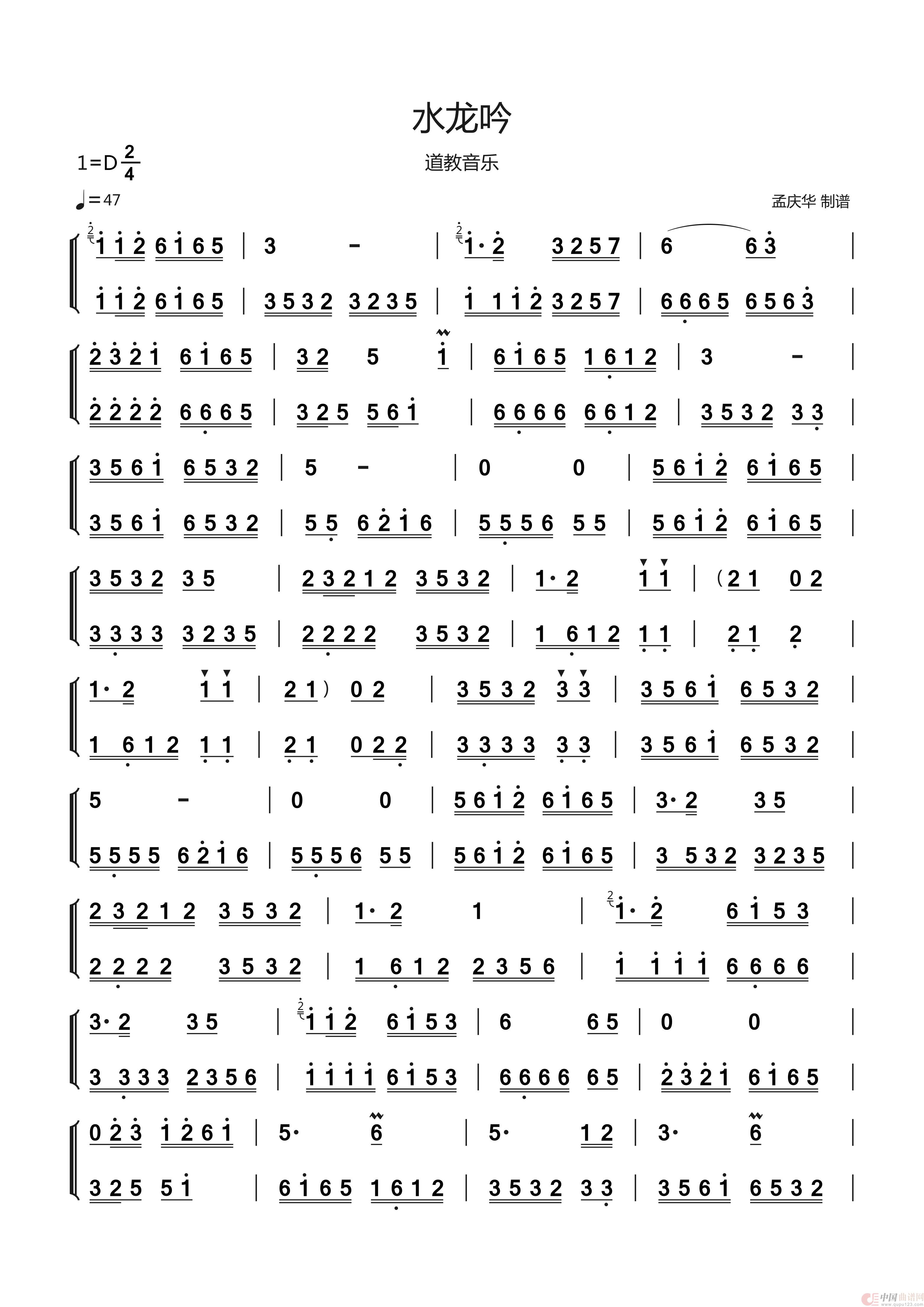 曲谱:水龙吟(道教音乐)