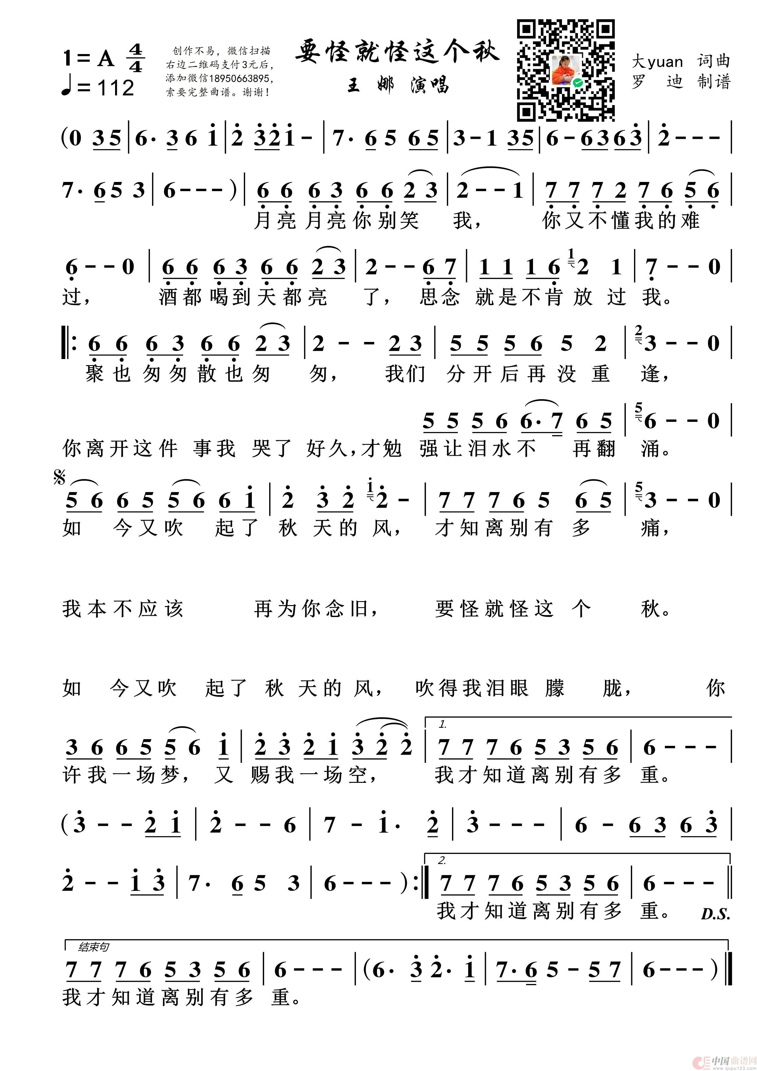 曲谱:要怪就怪这个秋