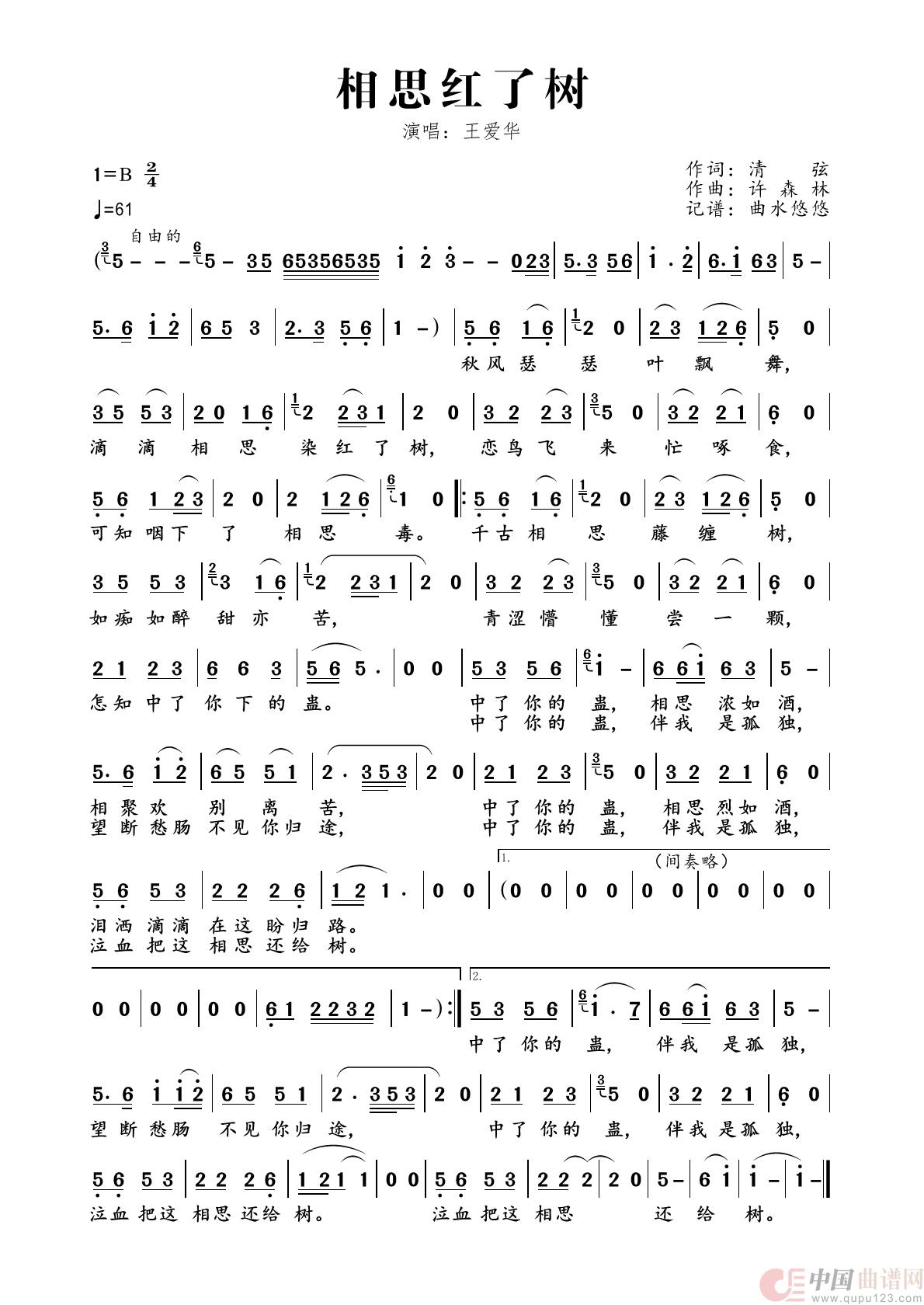 曲谱:相思红了树