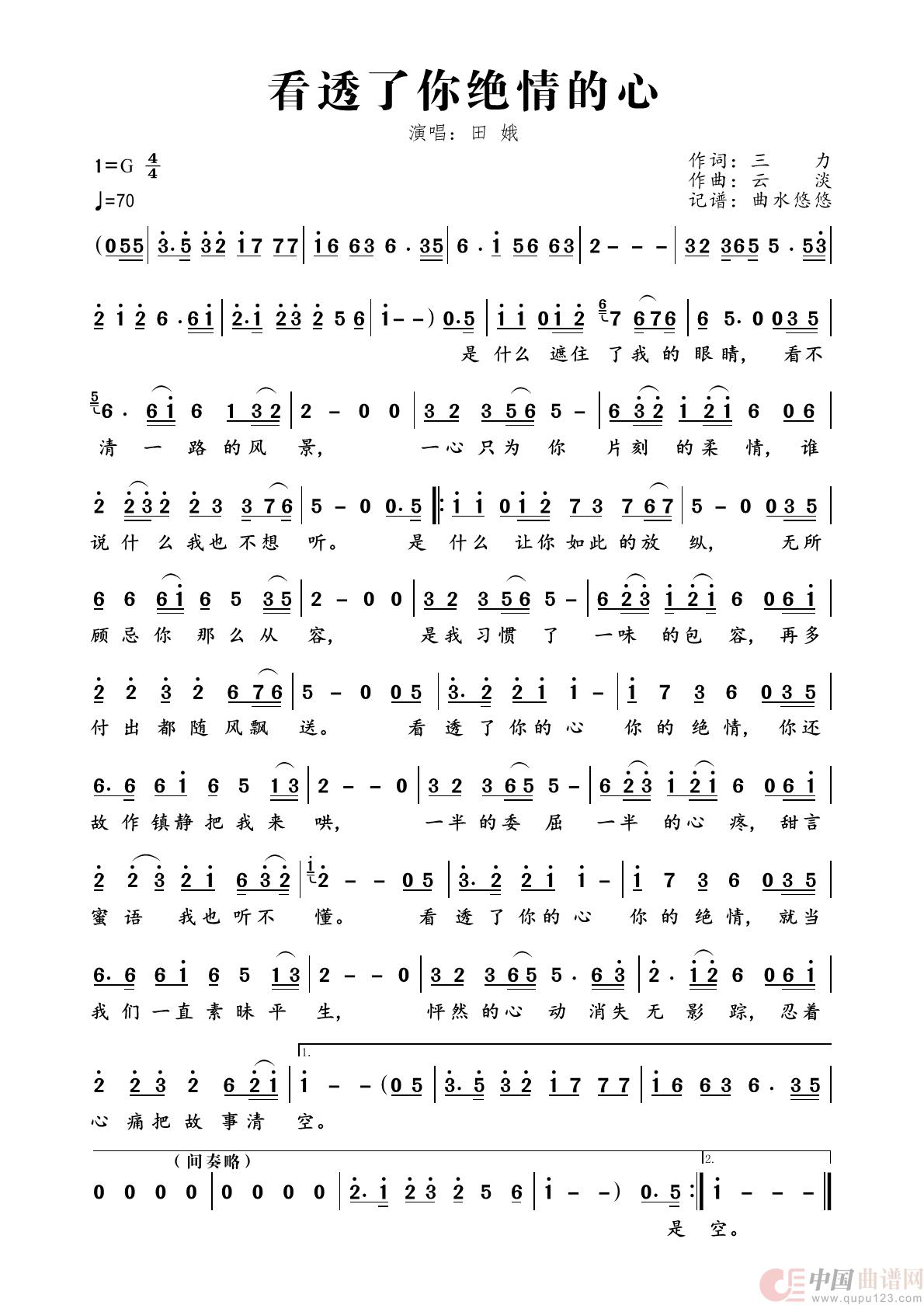 曲谱:看透了你绝情的心