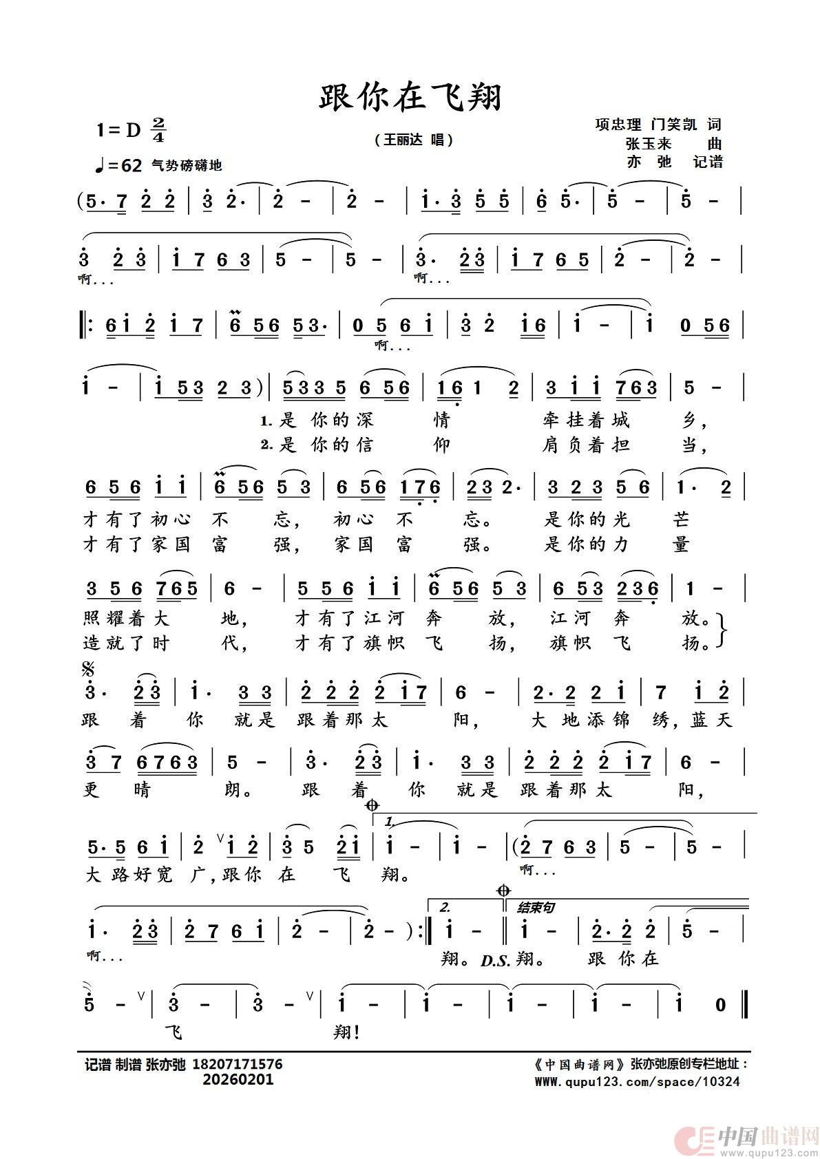 曲谱:跟你在飞翔(亦弛记谱)