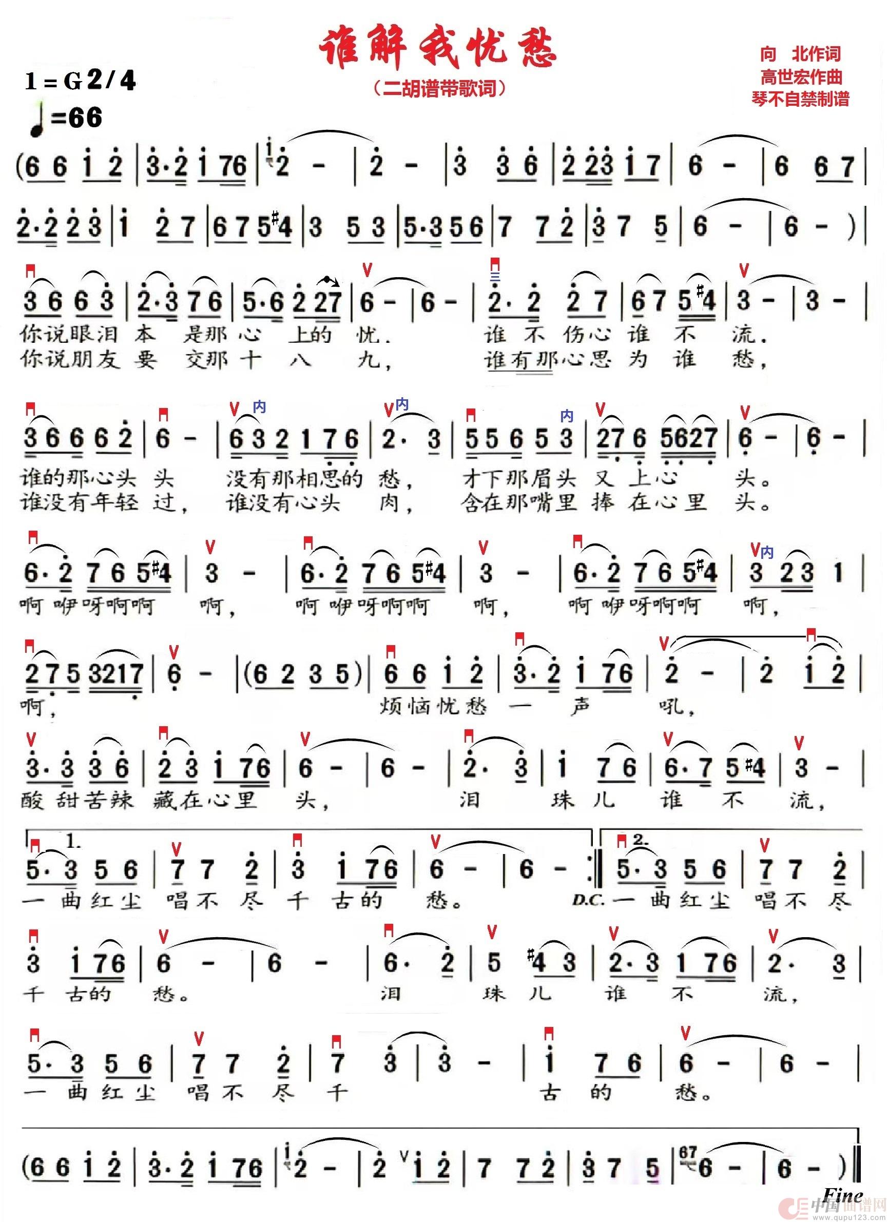 曲谱:谁解我忧愁(琴不自禁制谱版)