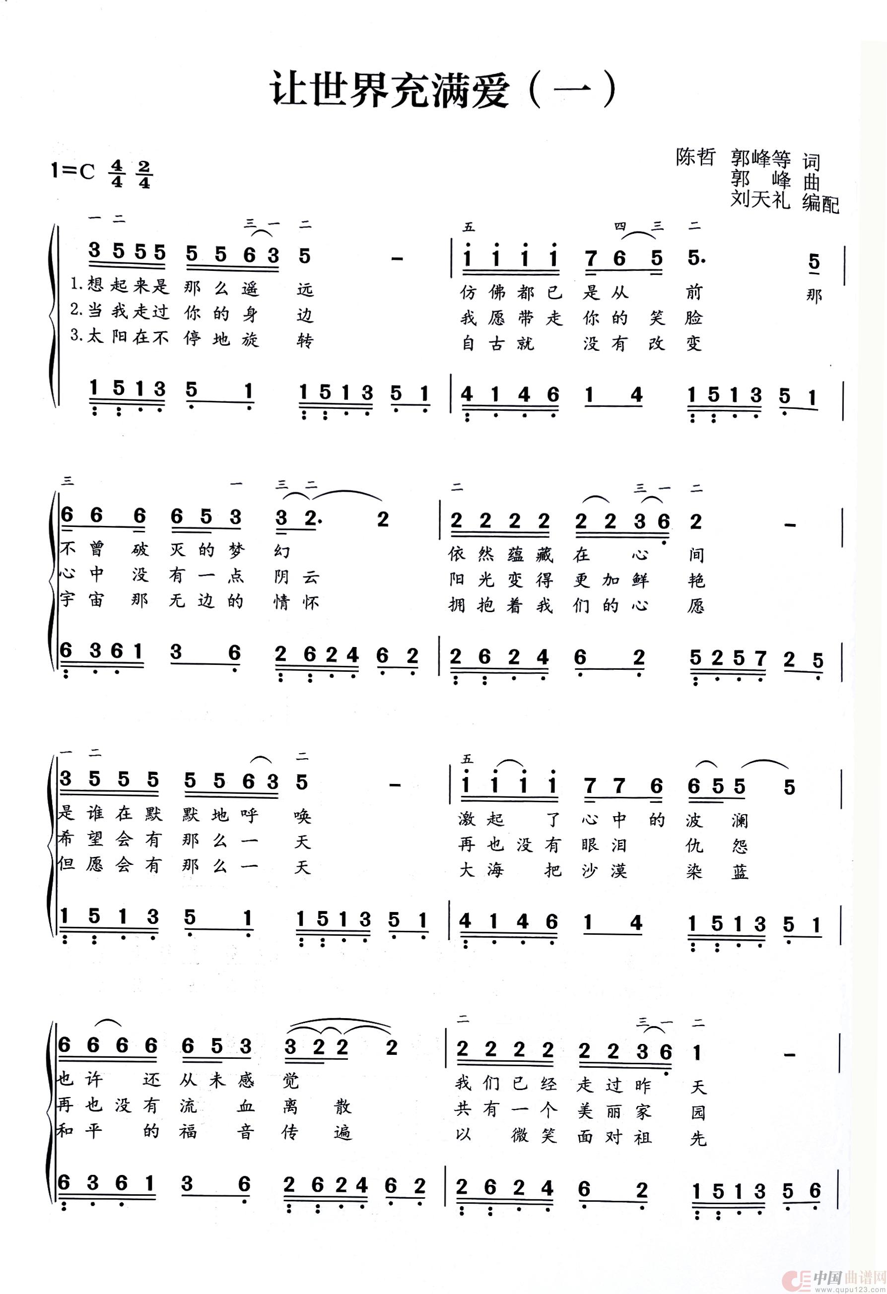 曲谱:让世界充满爱(钢琴双手简谱)
