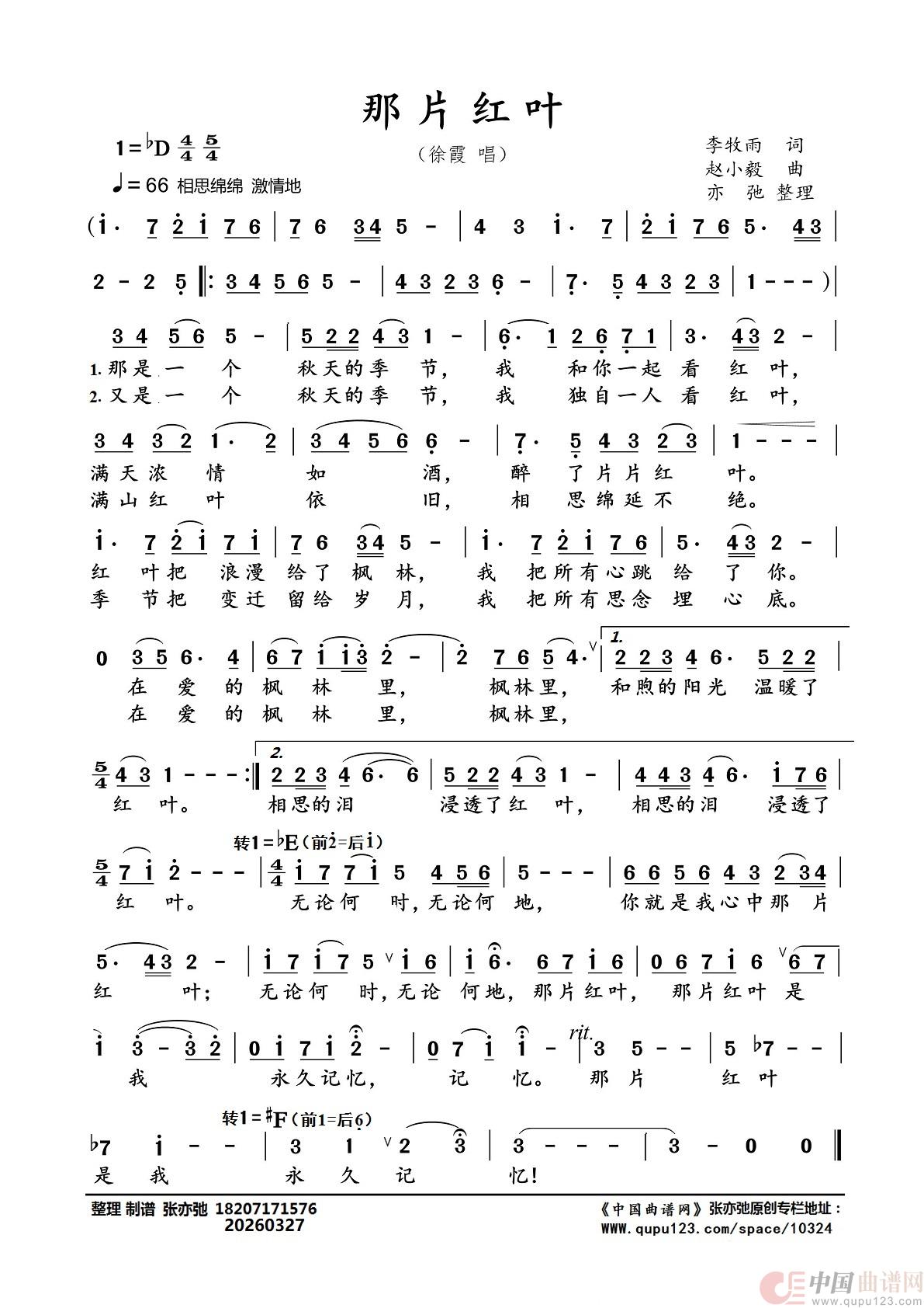 曲谱:那片红叶(亦弛整理)