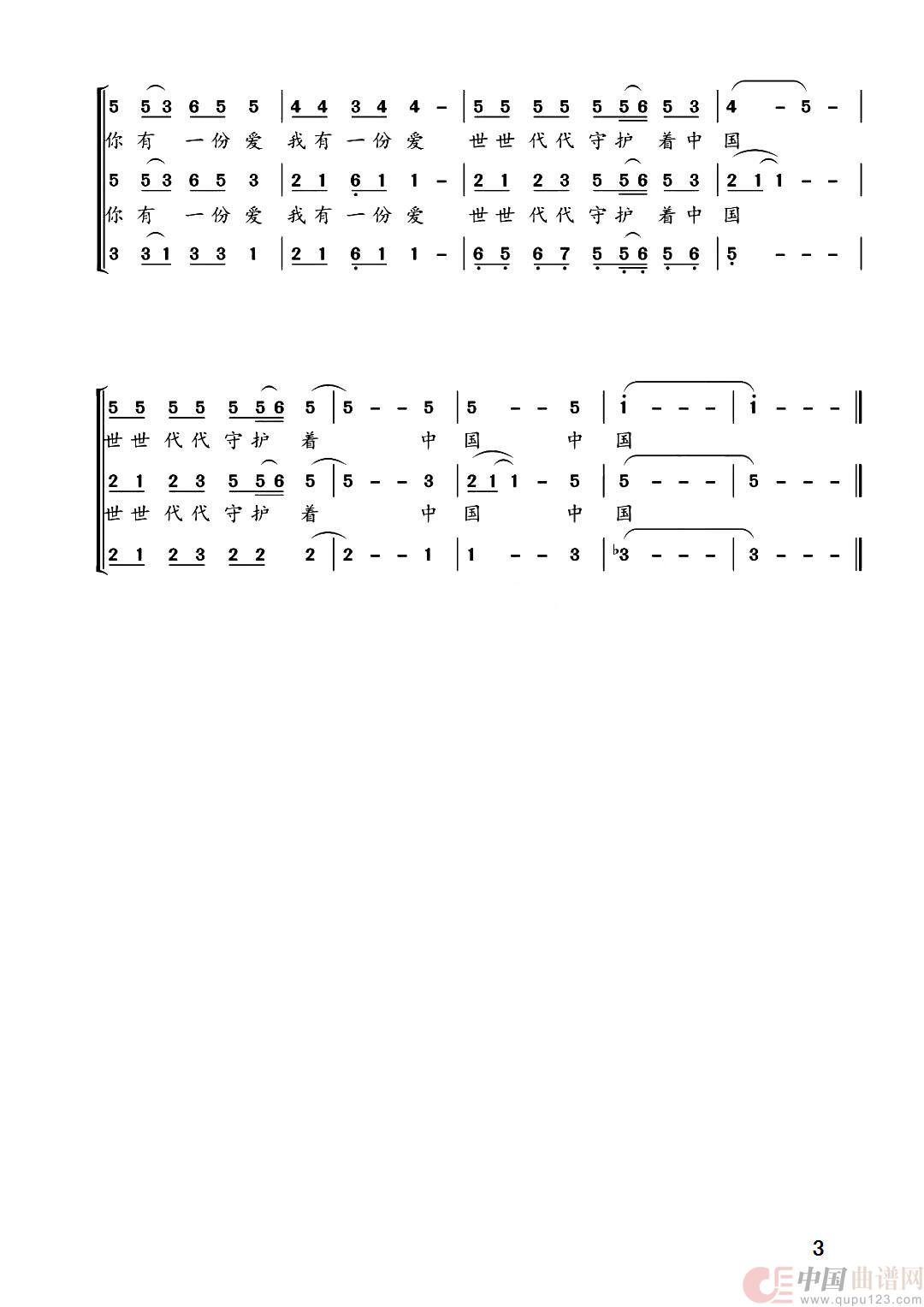 曲谱:中国(三声部合唱简谱)