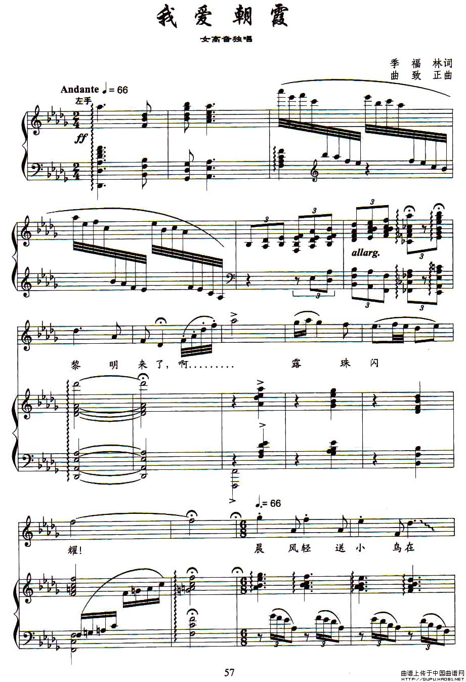 曲谱:我爱朝霞(正谱)