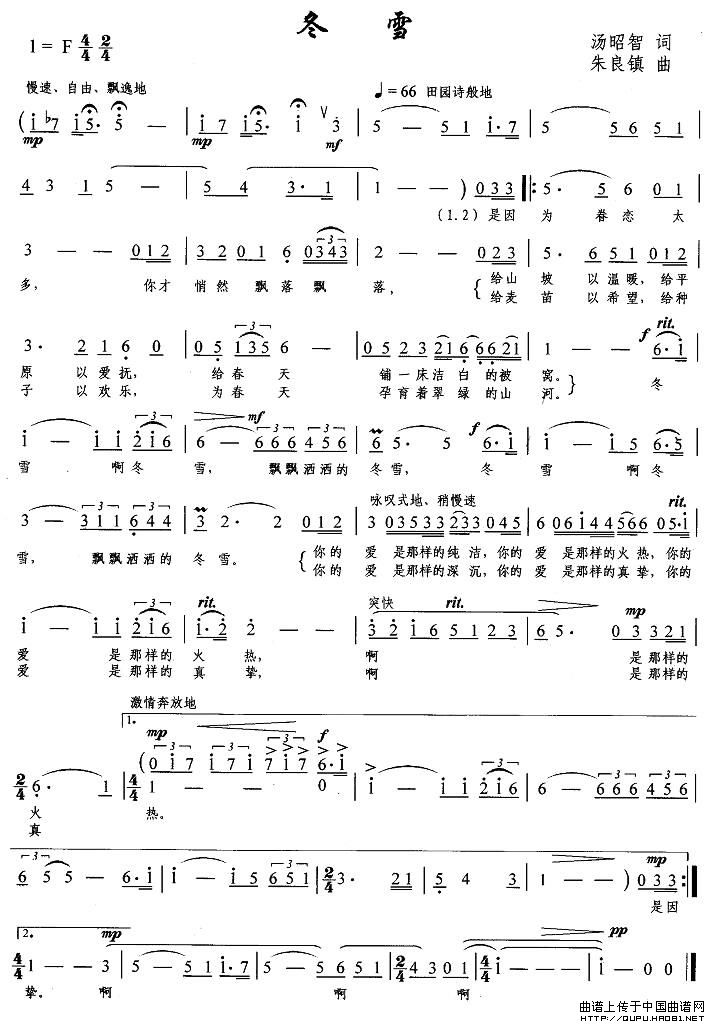 曲谱:冬雪(汤昭智词 朱良镇曲)