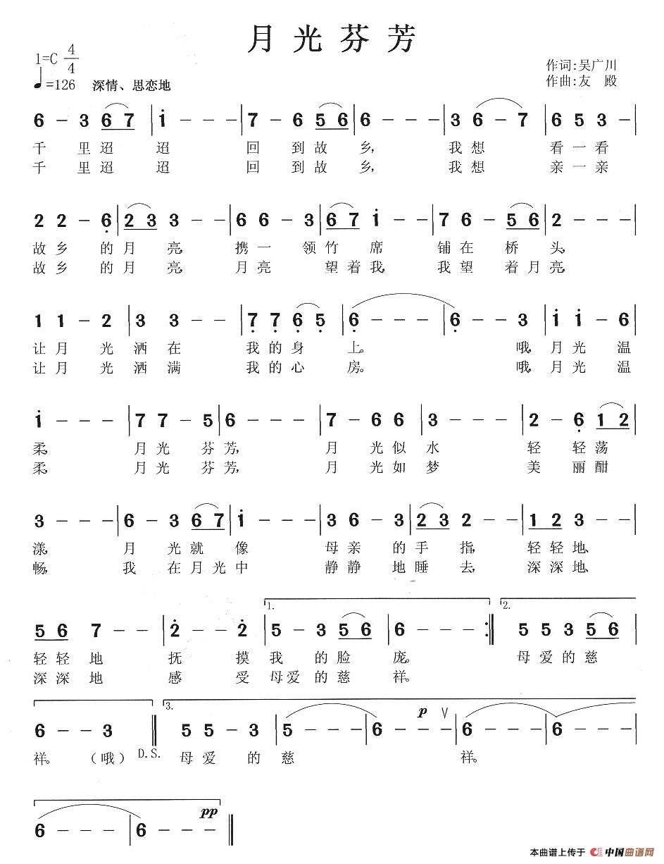 曲谱:月光芬芳(吴广川词 张友殿曲)