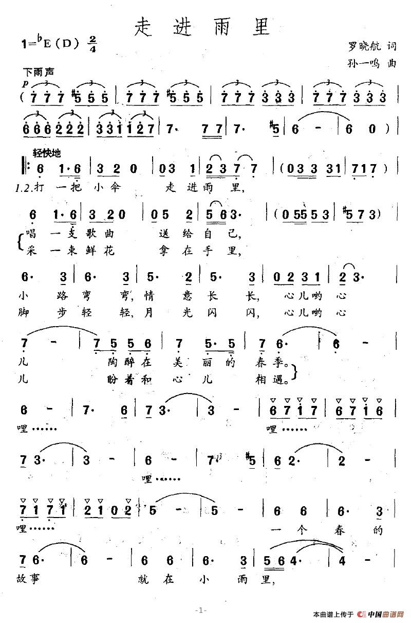 曲谱:走进雨里(罗晓航词 孙一鸣曲)