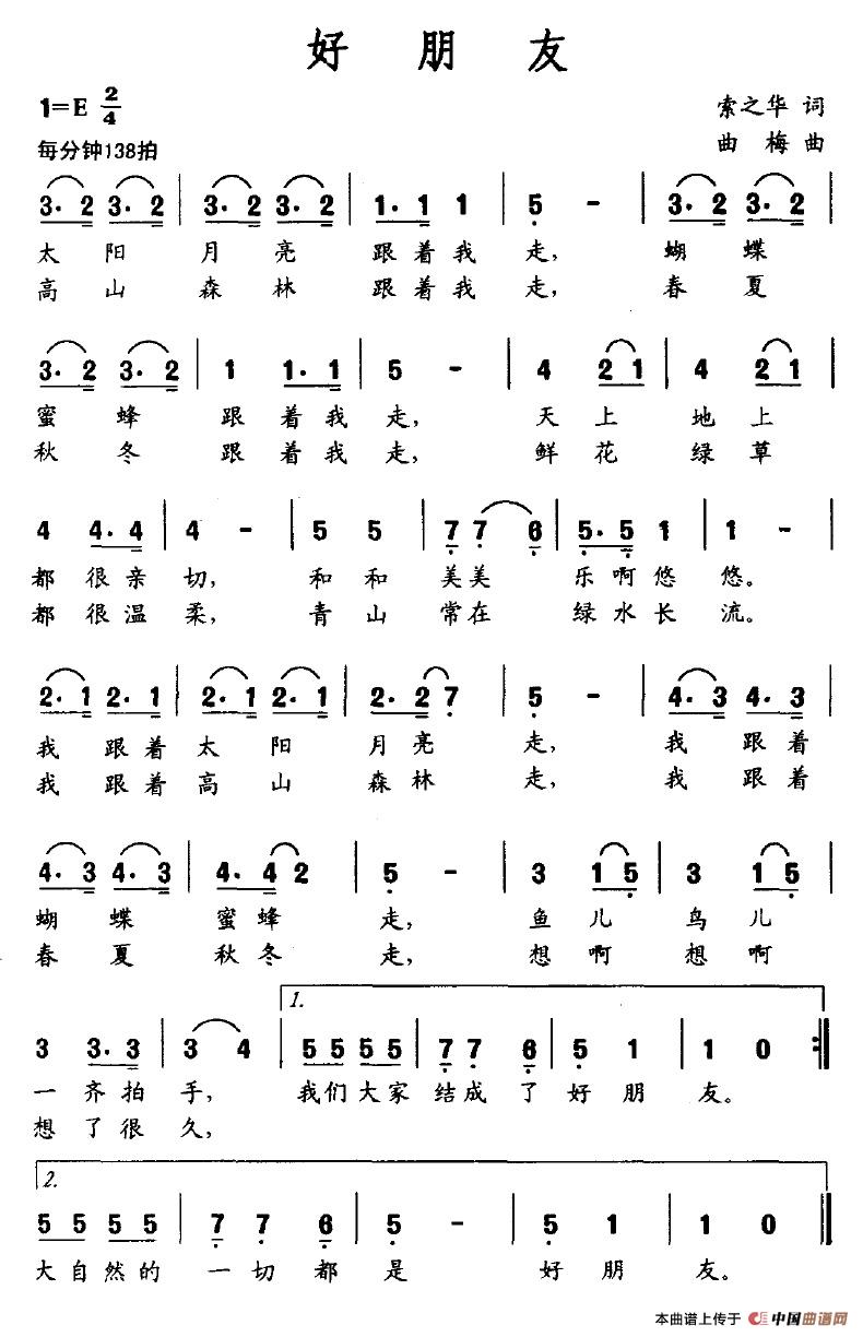 曲谱:好朋友(索之华词 曲梅曲)