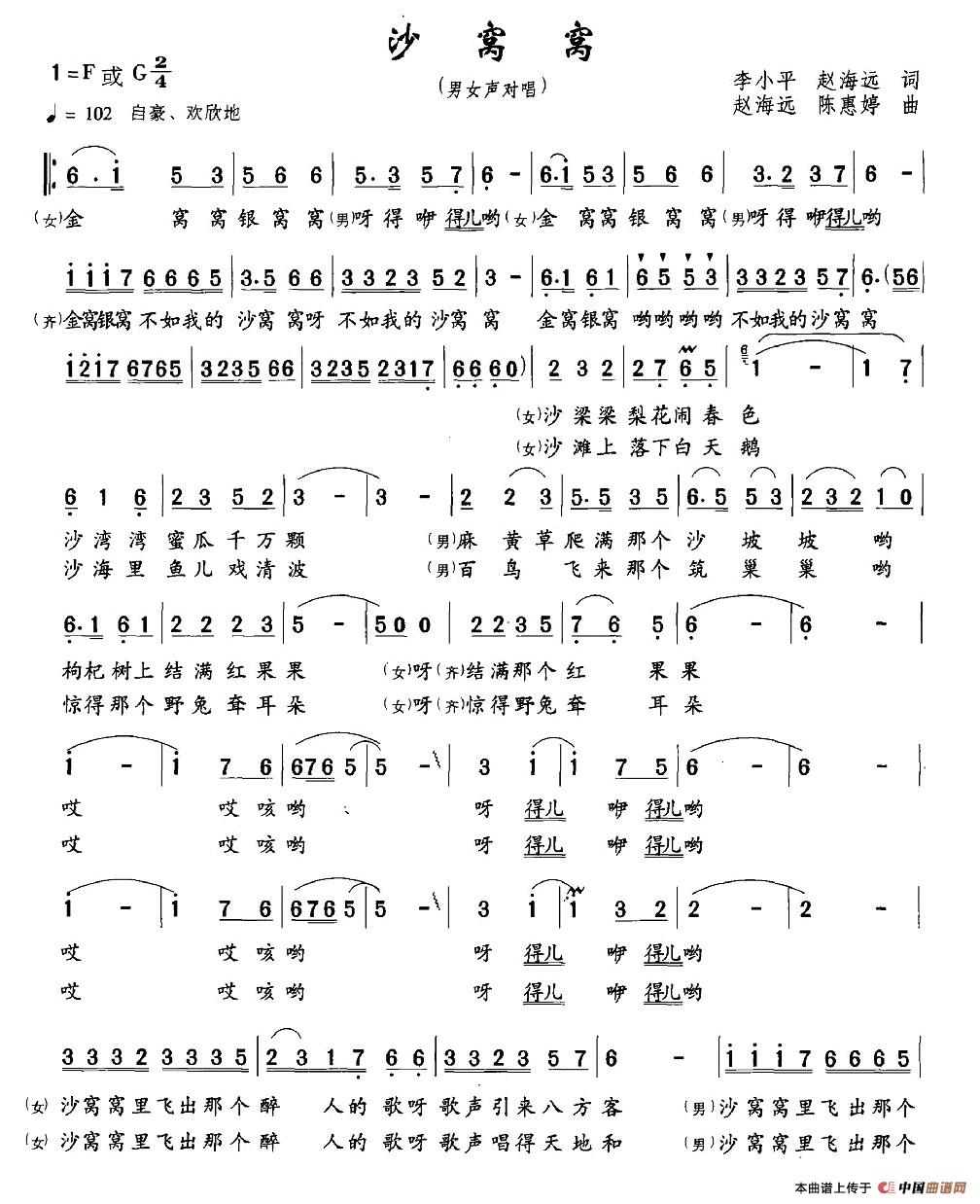 曲谱:沙窝窝(男女声对唱)
