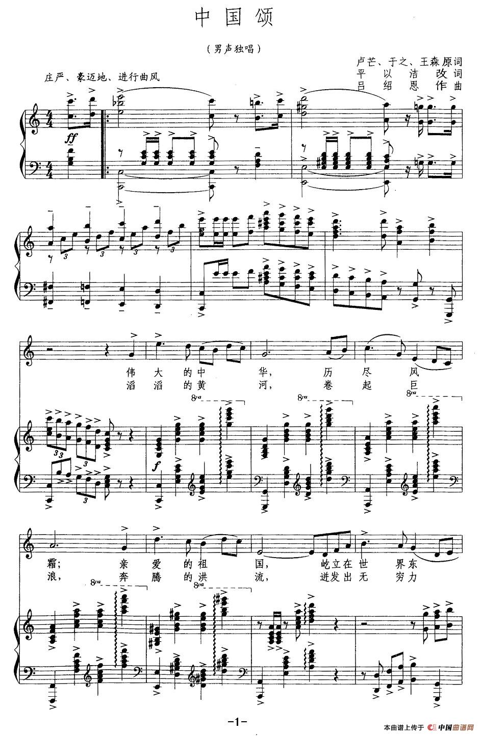 曲谱:中国颂(卢芒 等词 吕绍恩曲、正谱)