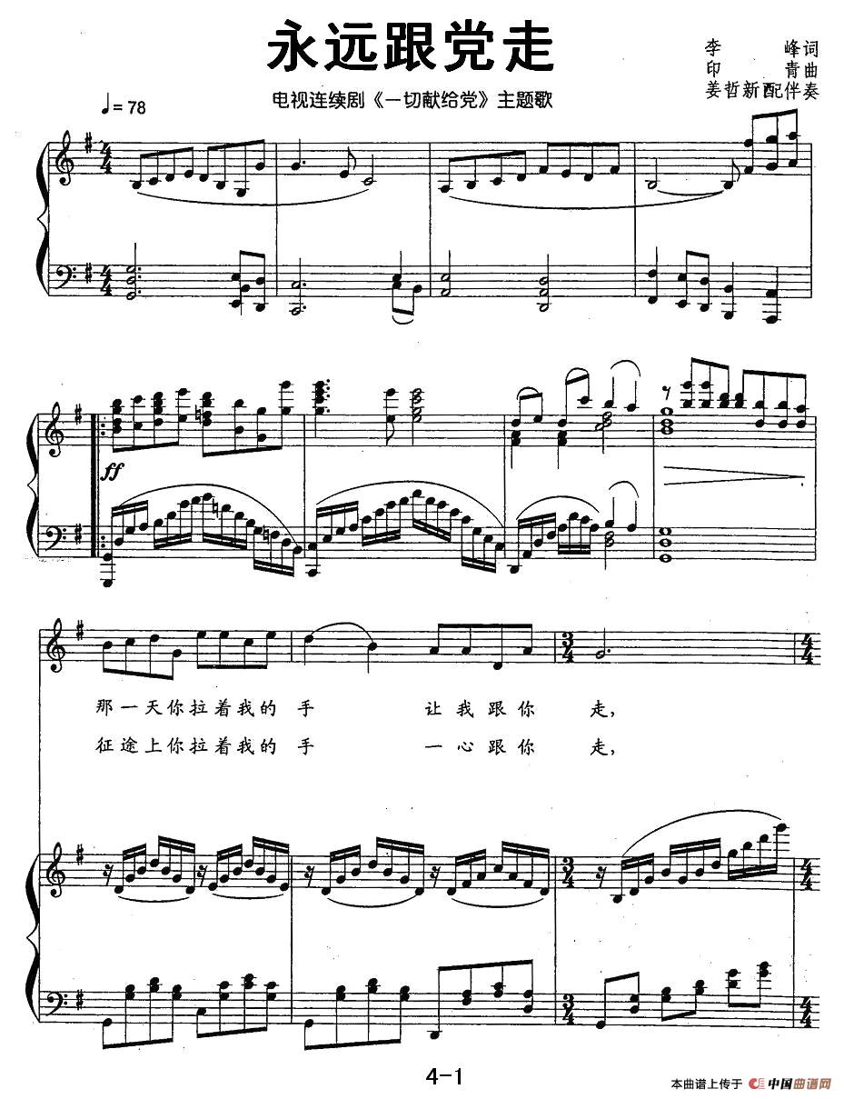 曲谱:永远跟党走(李锋词 印青曲、正谱)
