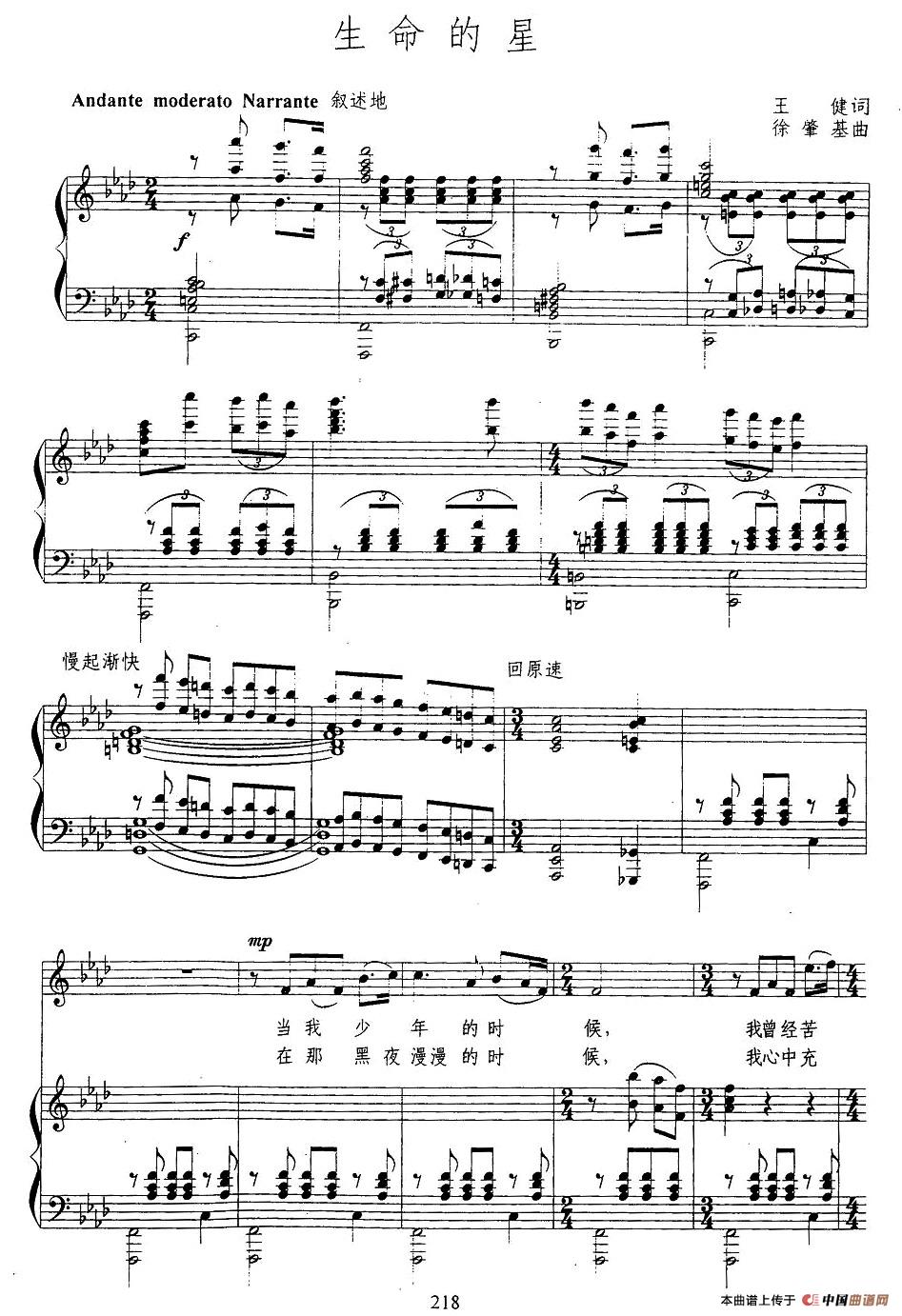 曲谱:生命的星(王健词 徐肇基曲、正谱)