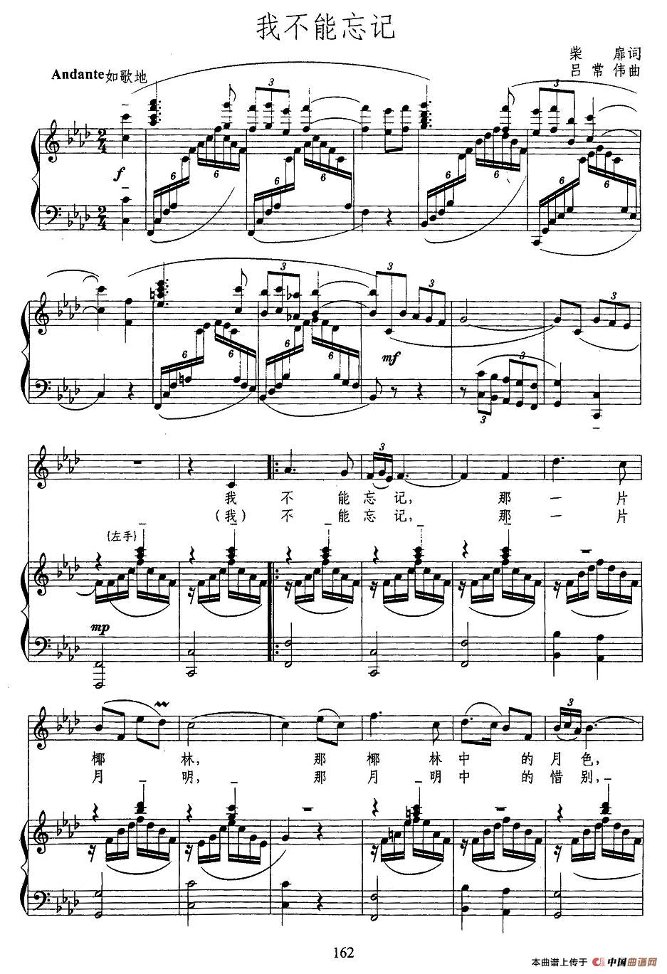 曲谱:我不能忘记(正谱)