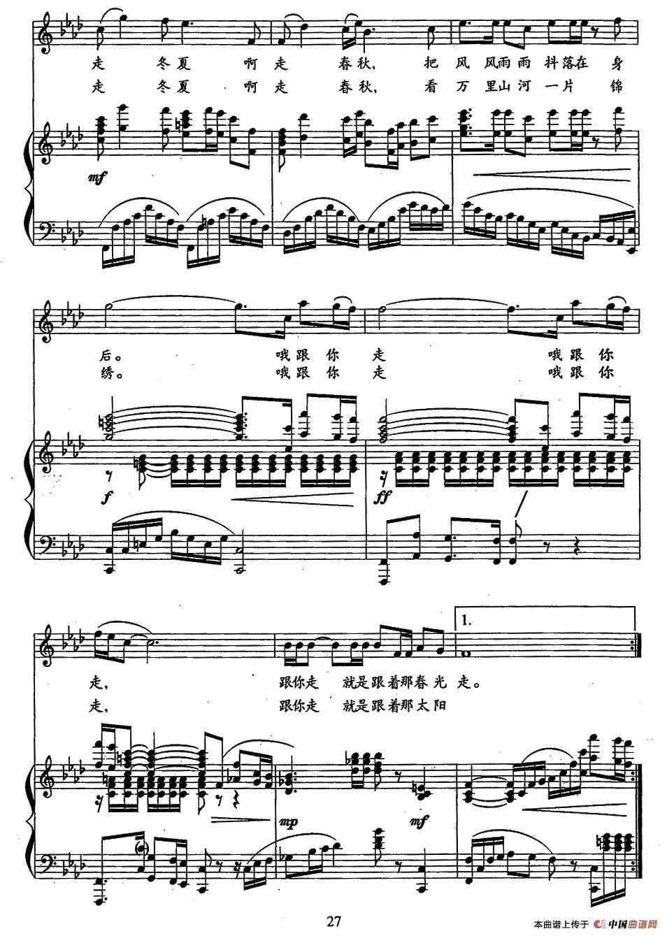 曲谱:跟你走(张海词 左翼建曲、正谱)