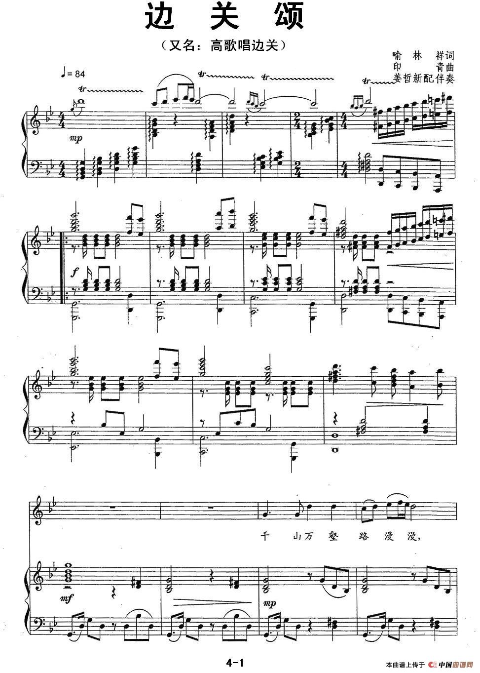 曲谱:边关颂(又名:高歌唱边关、正谱)