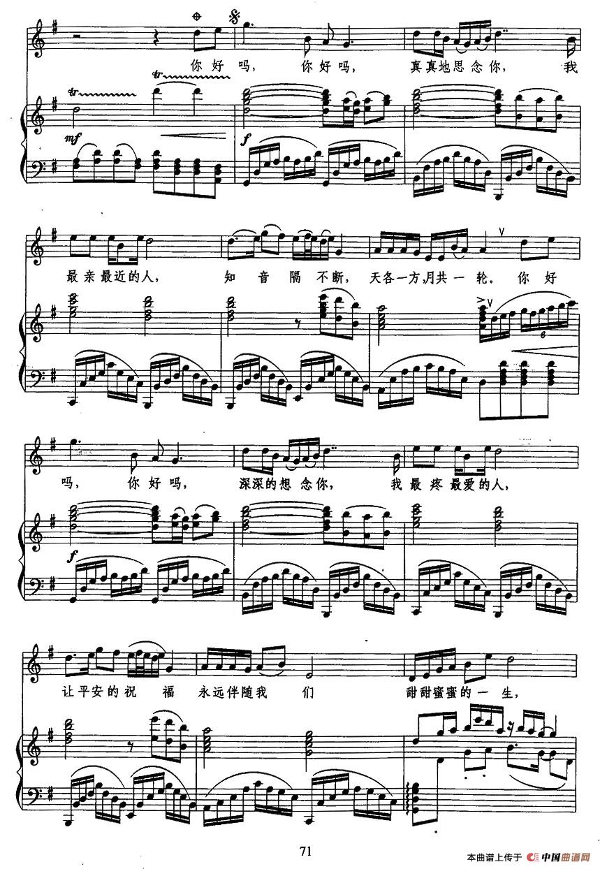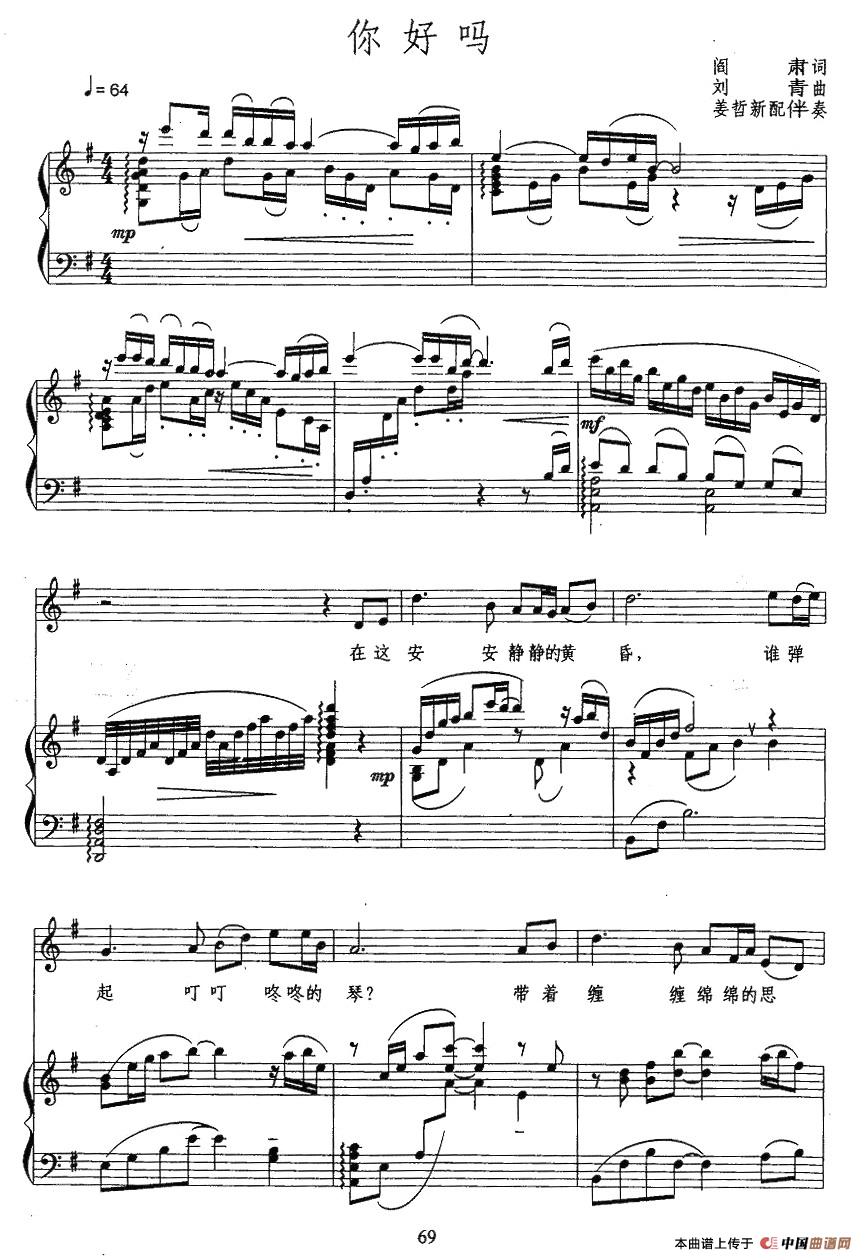 曲谱:你好吗(阎肃词 刘青曲、姜哲新配伴奏、正谱)