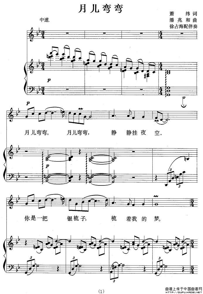 曲谱:月儿弯弯(萧纬词 潘兆和曲、正谱)