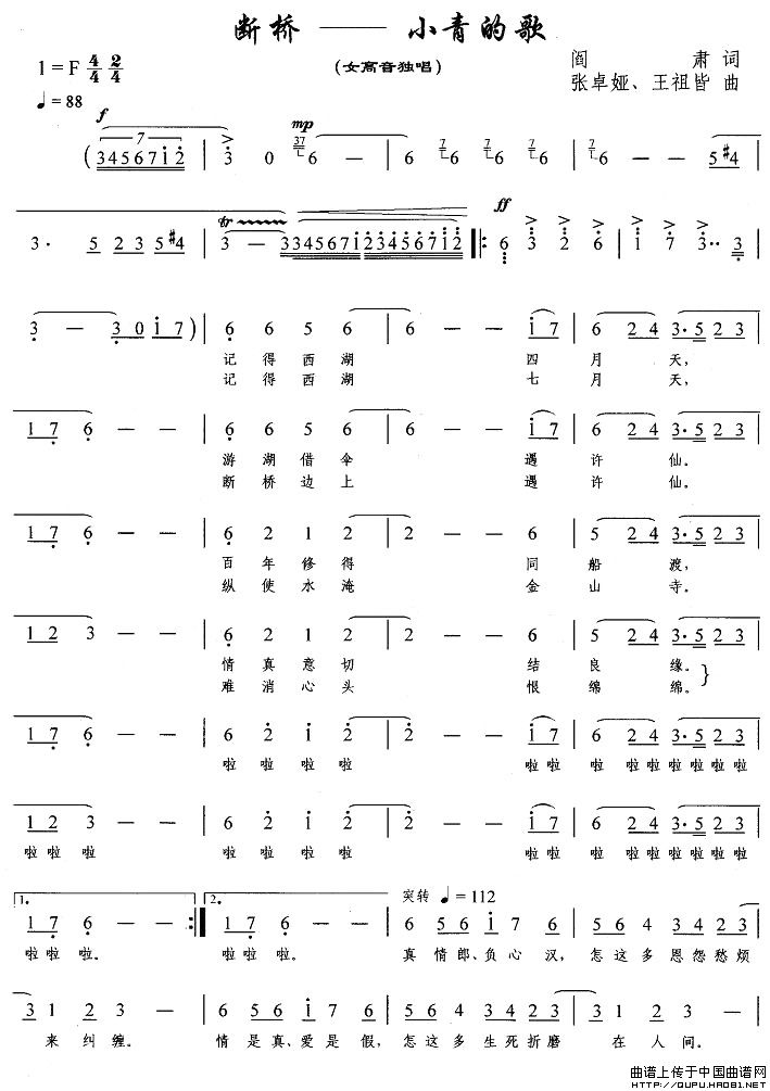 中国曲谱网所有曲谱及资料均为作者提供或网友推荐收集整理而来,仅供爱好者学习和研究使用,版权归原作者所有。如本站内容有侵犯您的合法权益,请和我们取得联系,我们将立即改正或删除。