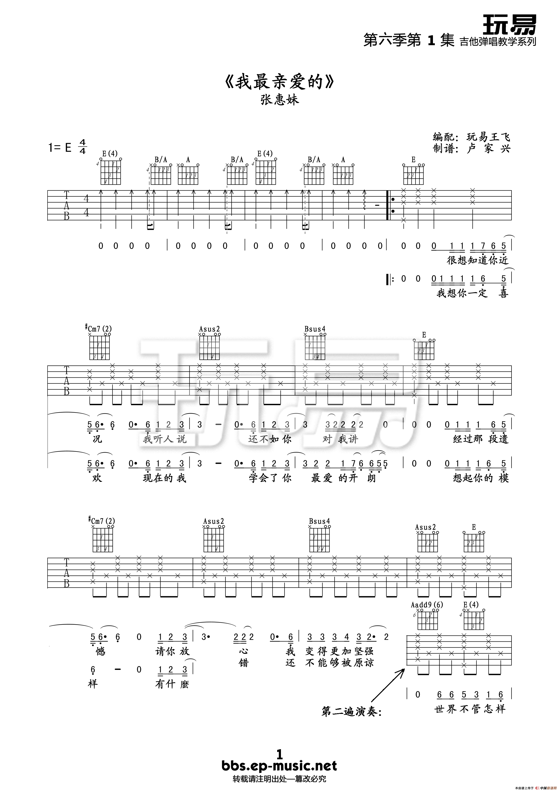 曲谱:我最亲爱的(吉他谱 六线谱)