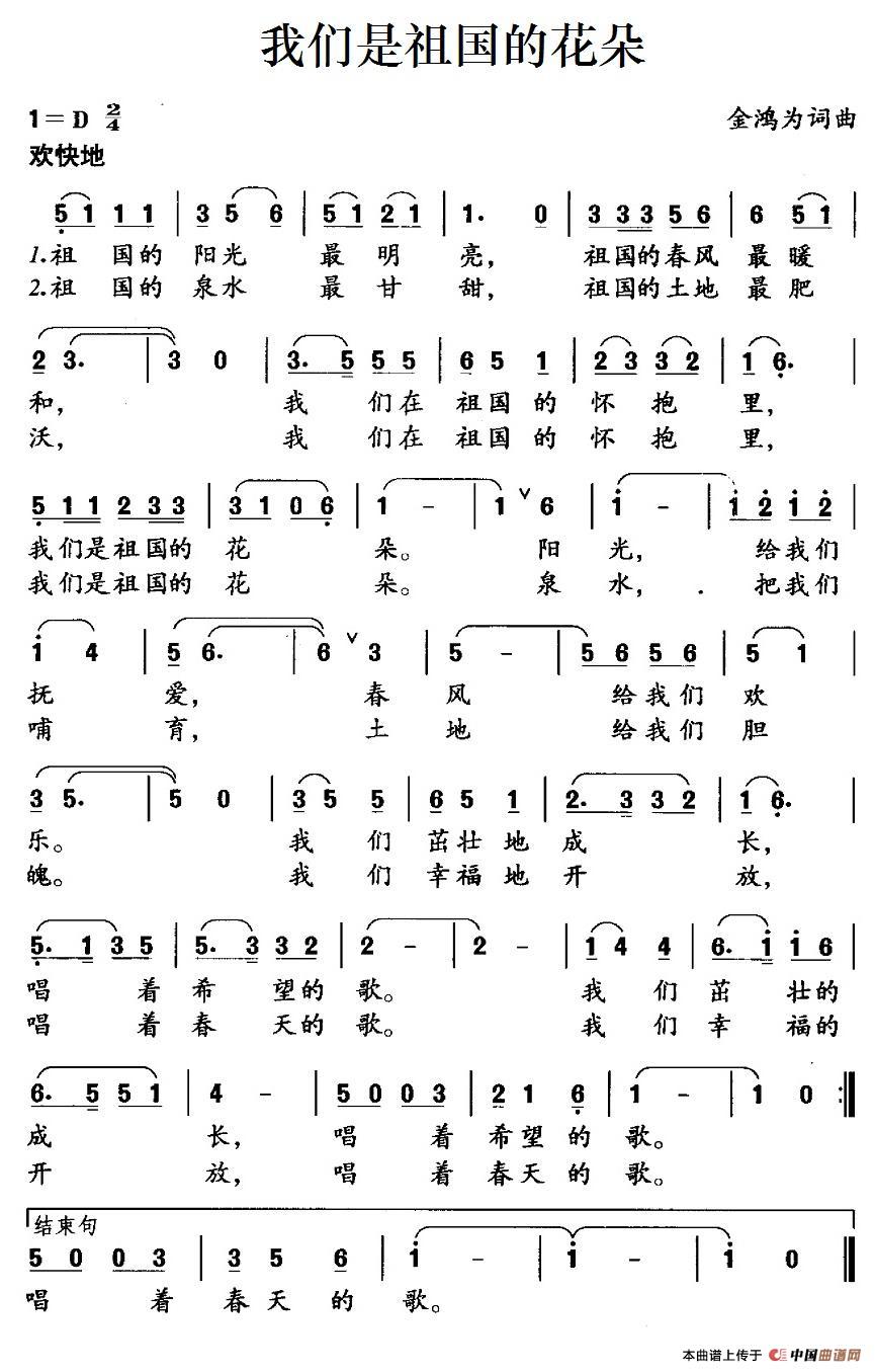 曲谱:我们是祖国的花朵(金鸿为 词曲)
