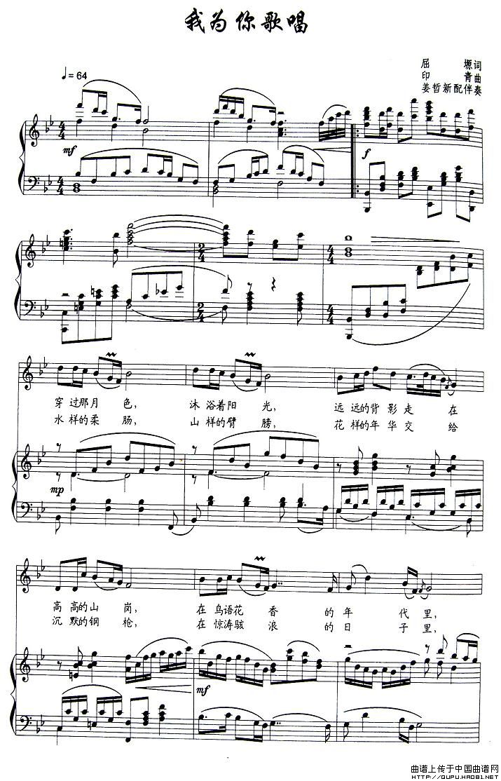 曲谱:我为你歌唱(屈塬词 印青曲、正谱)