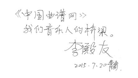 《中国曲谱网》衷心感谢李殿友老师对谱站的大力支持和热情扶助!感谢李殿友老师馈赠原版曲谱!我们特地将这些宝贵资料编撰成专辑,奉献给广大谱友!同时我们预祝李殿友老师作品多多,好歌连连,永远唱响时代的强音!
