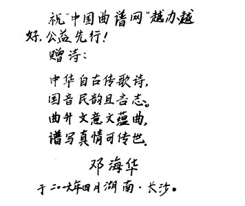 《中国曲谱网》衷心感谢邓海华老师在谱站“落户”!