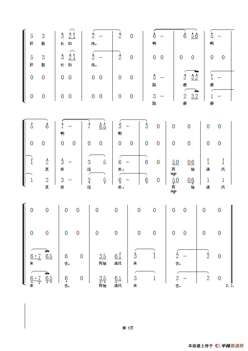 提示:在曲谱图片上单击右键,选择"图片另存为..."即可将曲谱保存到您的电脑中,打印时候可将图片插入到WORD中,调整合适大小打印即可。