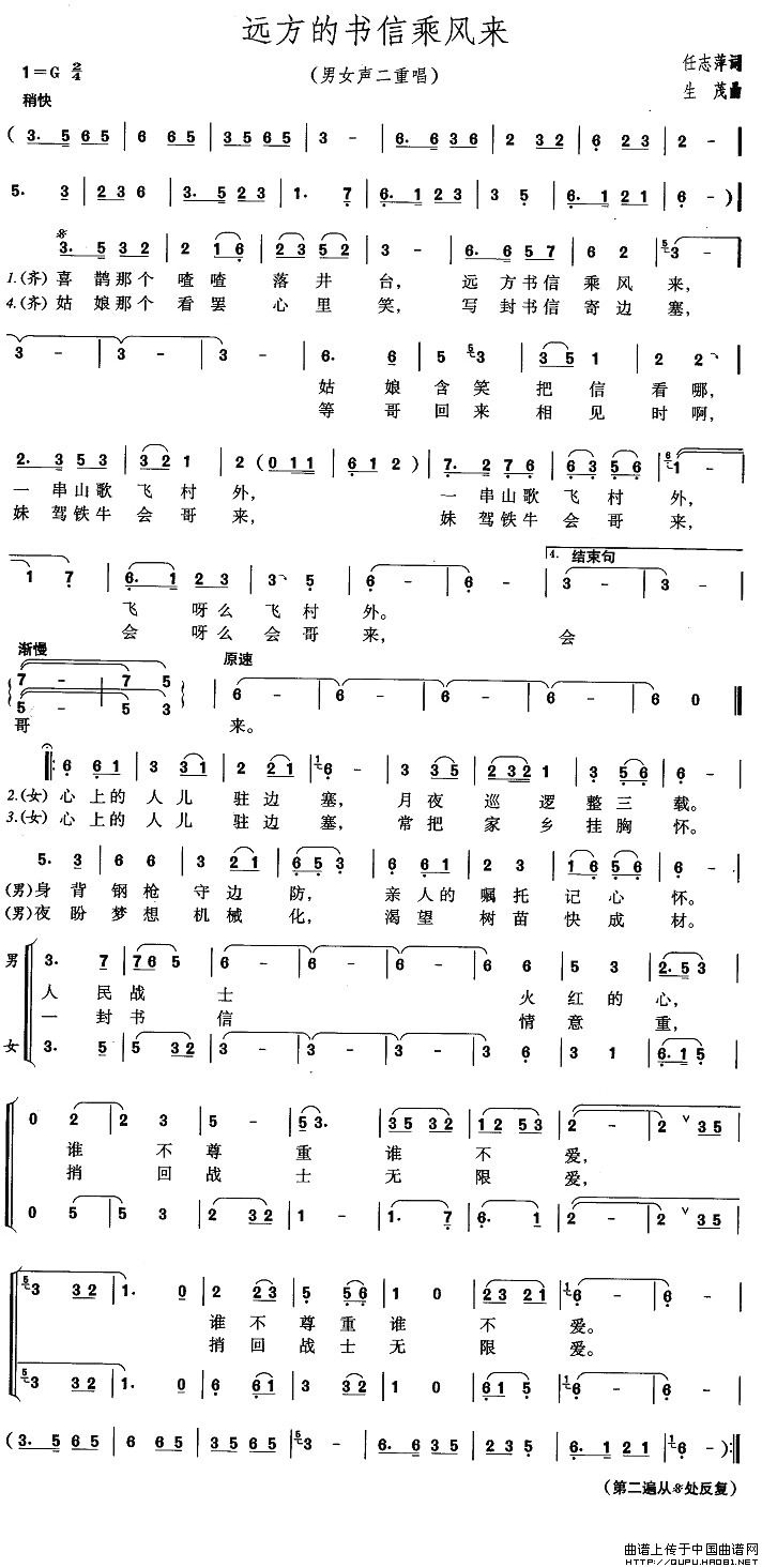 关于《远方的书信乘风来》曲谱的评论