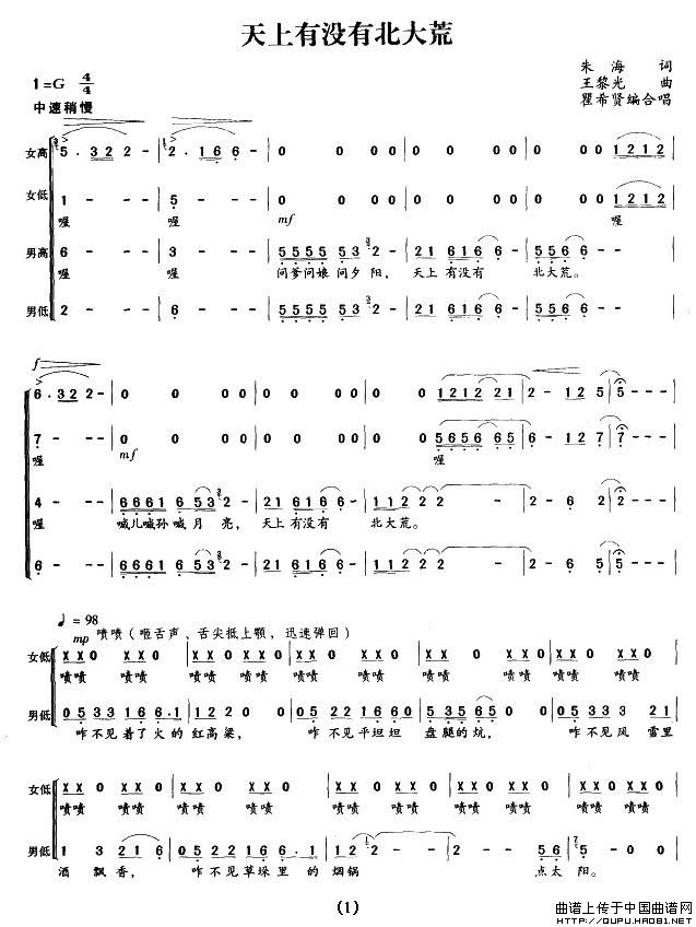 关于《天上有没有北大荒》曲谱的评论