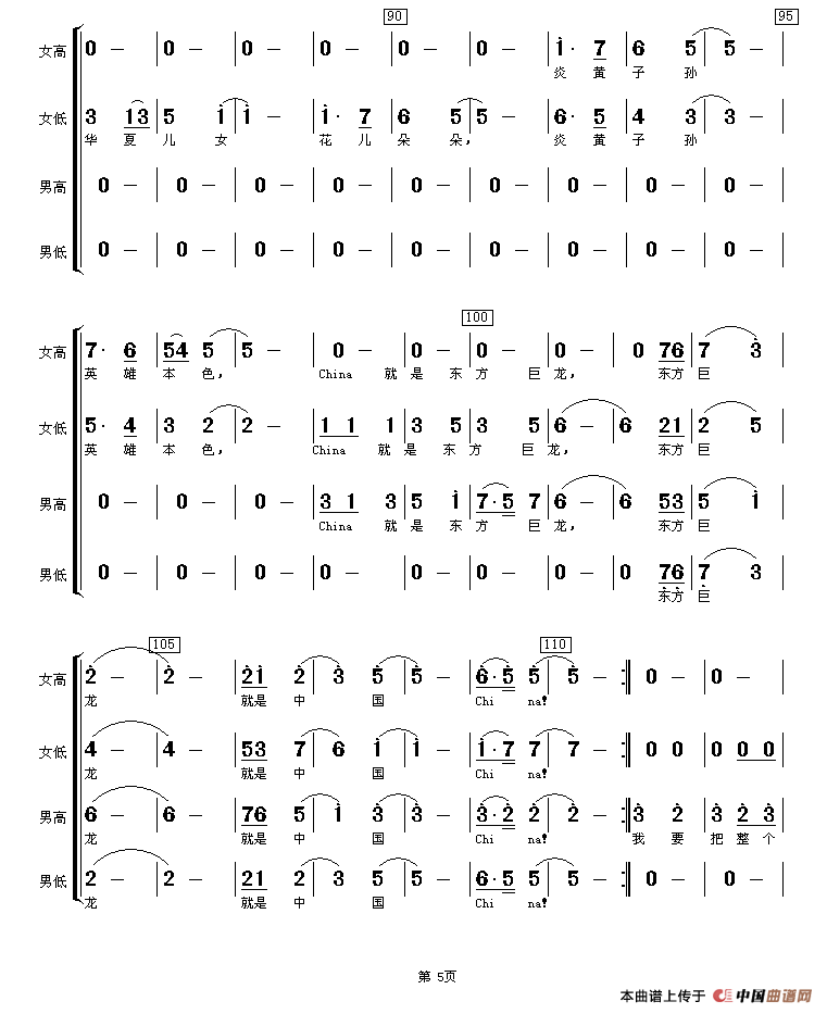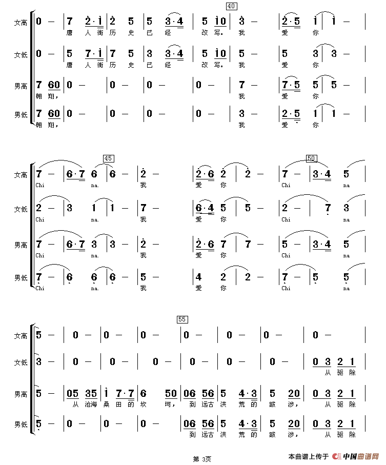 关于《我爱你China》曲谱的评论