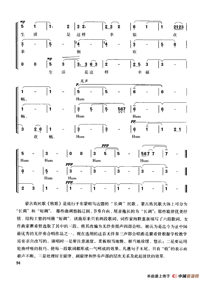 关于《牧歌》曲谱的评论