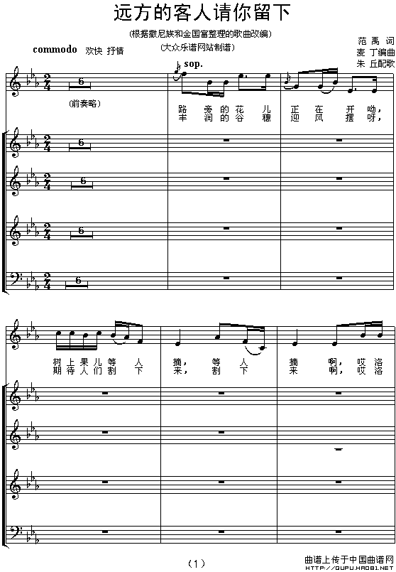 提示:在曲谱图片上单击右键,选择“图片另存为...”即可将曲谱保存到您的电脑中,打印时候可将图片插入到WORD中,调整合适大小打印即可。