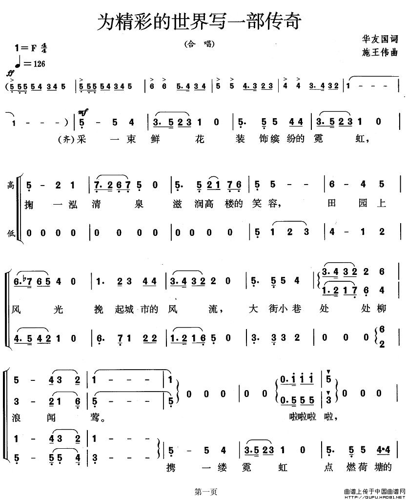 关于《为精彩的世界写一部传奇》曲谱的评论